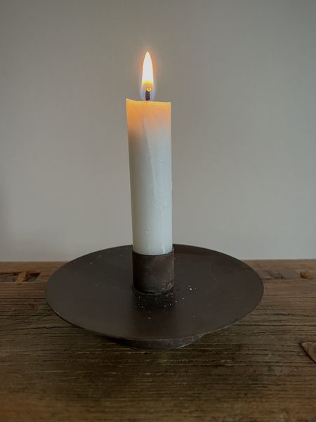 Flott kobberfarget lysestake i rustikk look. Lysestaken vil fortsette å patineres dersom den utsettes for fukt.