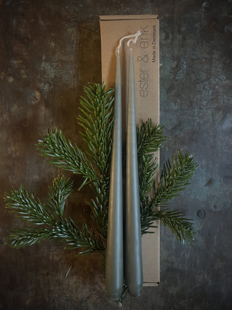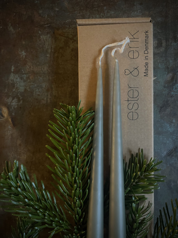 Nydelige håndstøpte lys fra ester & erik i en matt dempet grønnfarge. Lysene kommer i 4-pakning.