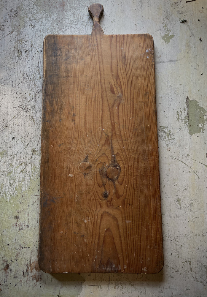 Stor og smal skjærefjøl med en flott patina. Nydelig som dekorasjon oppetter kjøkkenbenken, eller som serveringsfat. Perfekt for servering av pizza, tapas eller ost og kjeks.