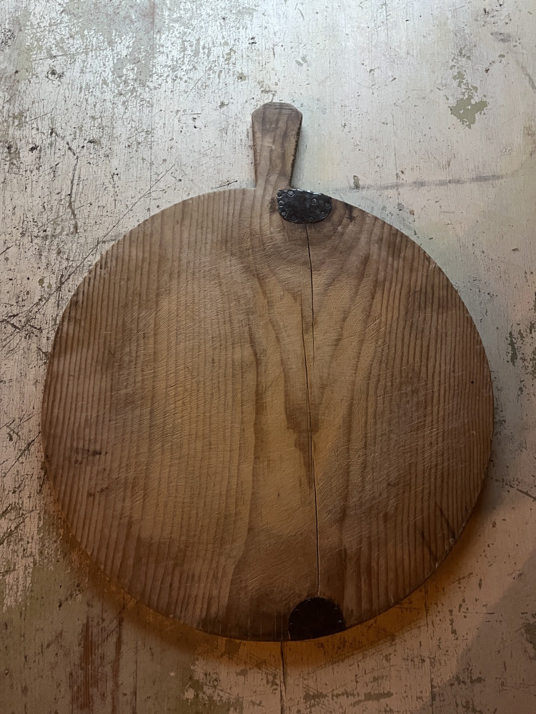 Stor vintage trefjøl med nydelig patina. Perfekt som serveringsfat, og en fin innredningsdetalj i ditt kjøkken. Skjærefjøla er håndlaget, og hver og en er unik.