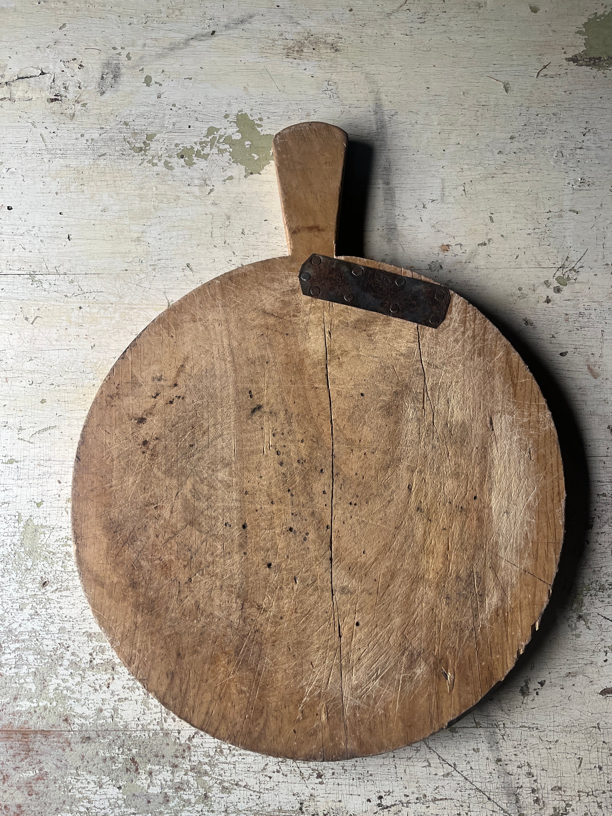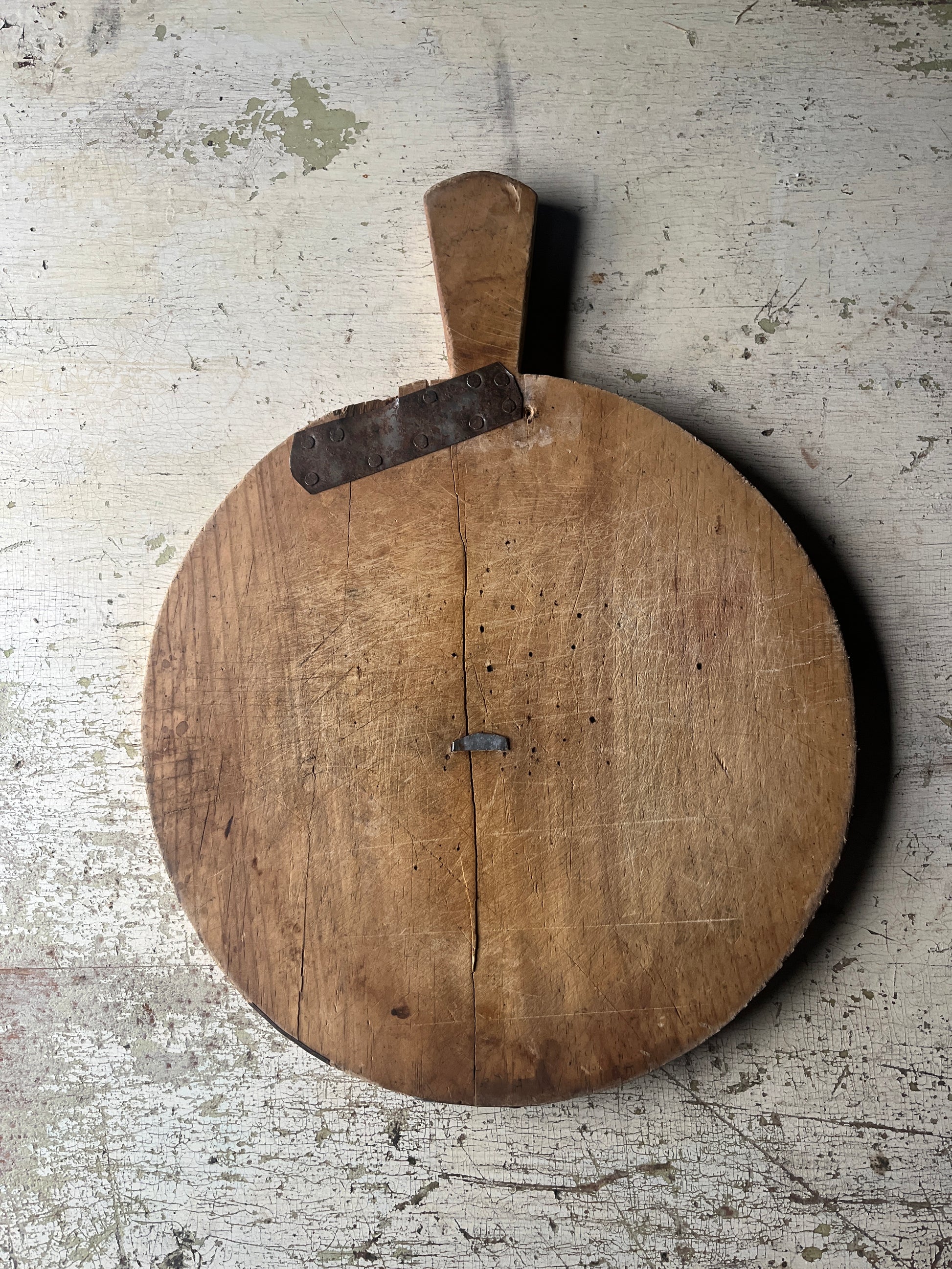 Nydelig eldre trefjøl med spor av levd liv. Perfekt som fat til pålegg, tapas eller pizza. Funderer også godt som dekorelement på kjøkkenveggen.