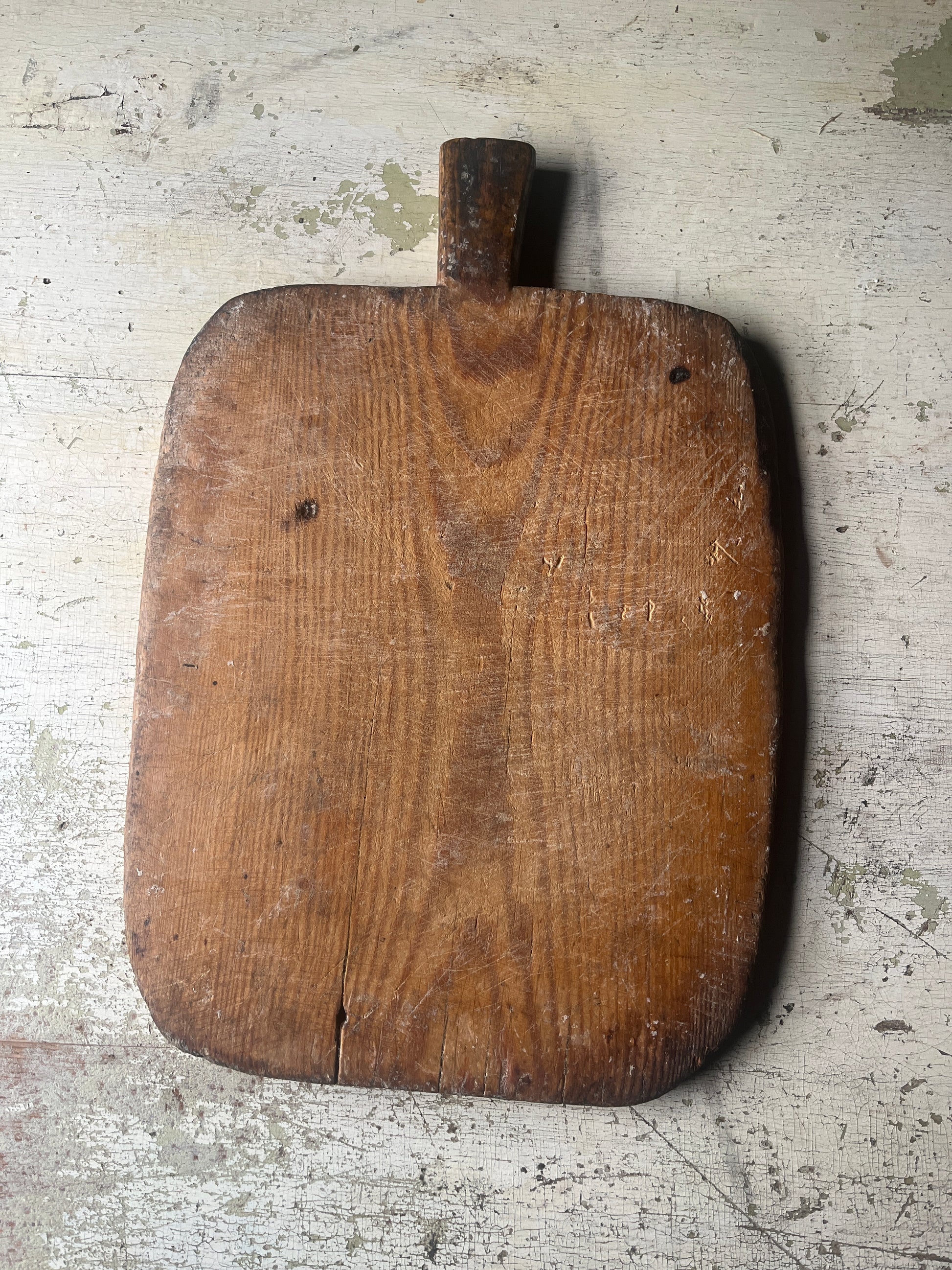 Pen eldre trefjøl med nydelig patina. Perfekt som fat til pålegg, tapas eller pizza. Fungerer også godt som dekorelement på kjøkkenveggen.
