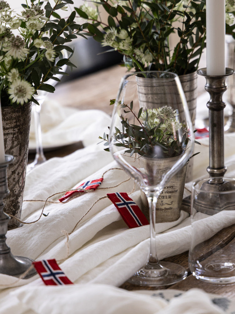 Hvert flagg måler 3,5 x 5,5 cm, og den 3 meter lange snoren gjør det enkelt å justere flaggene individuelt, slik at de passer perfekt til oppsetningen. Håndsydd med omtanke og presisjon på vårt eget syverksted i ekte flaggduk av høyeste kvalitet.