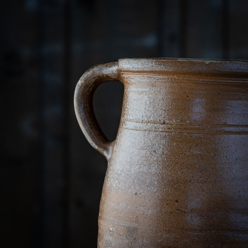 Stor fransk antikk krukke i glasert steintøy. Perfekt detalj på kjøkkenet, enten som dekor, eller som vase til dine favorittblomster.
