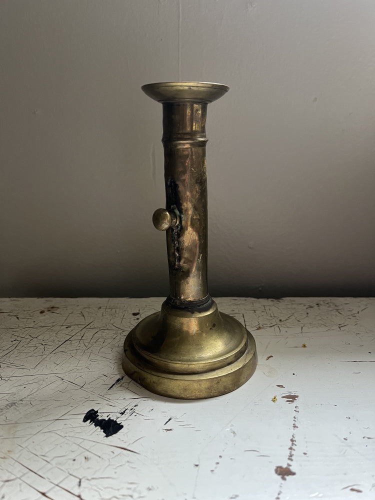 Rustikk messinglysestake fra Frankrike. Lysestaken gjør seg godt alene, men er også fin sammen med andre typer lysestaker i messing.