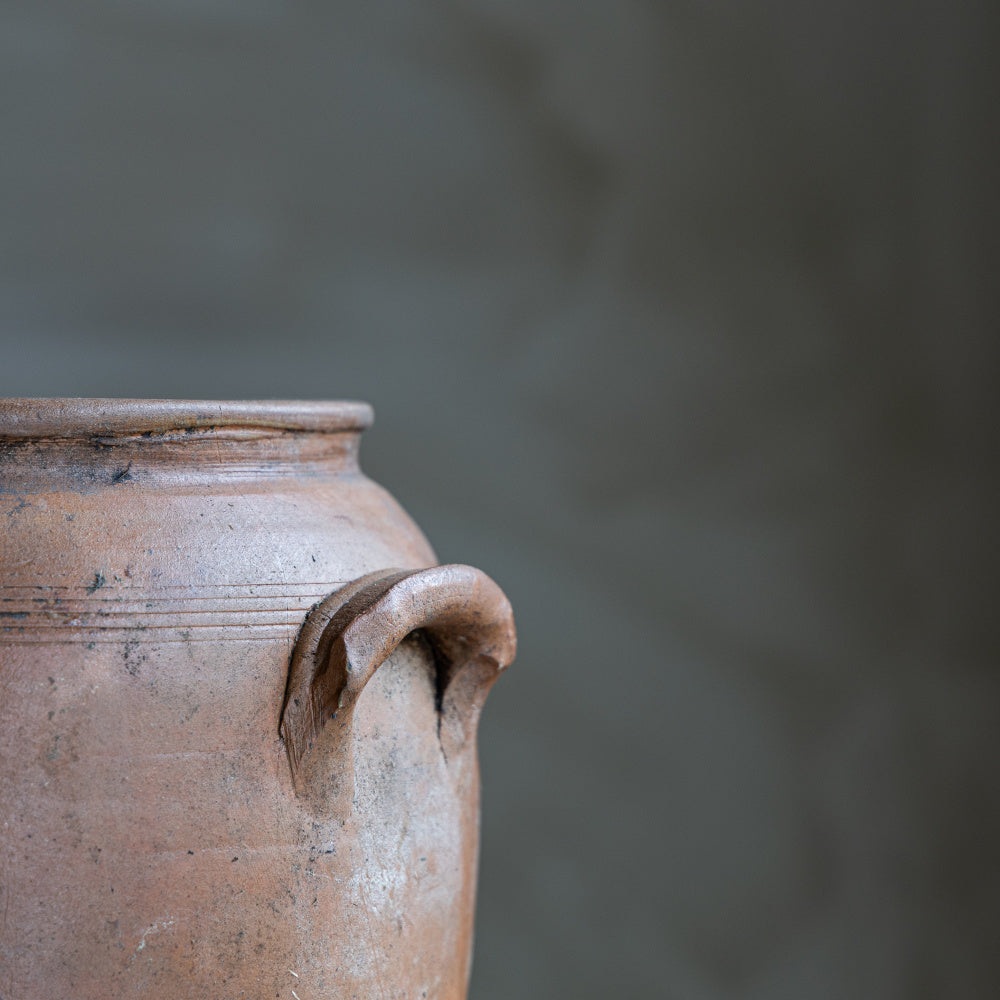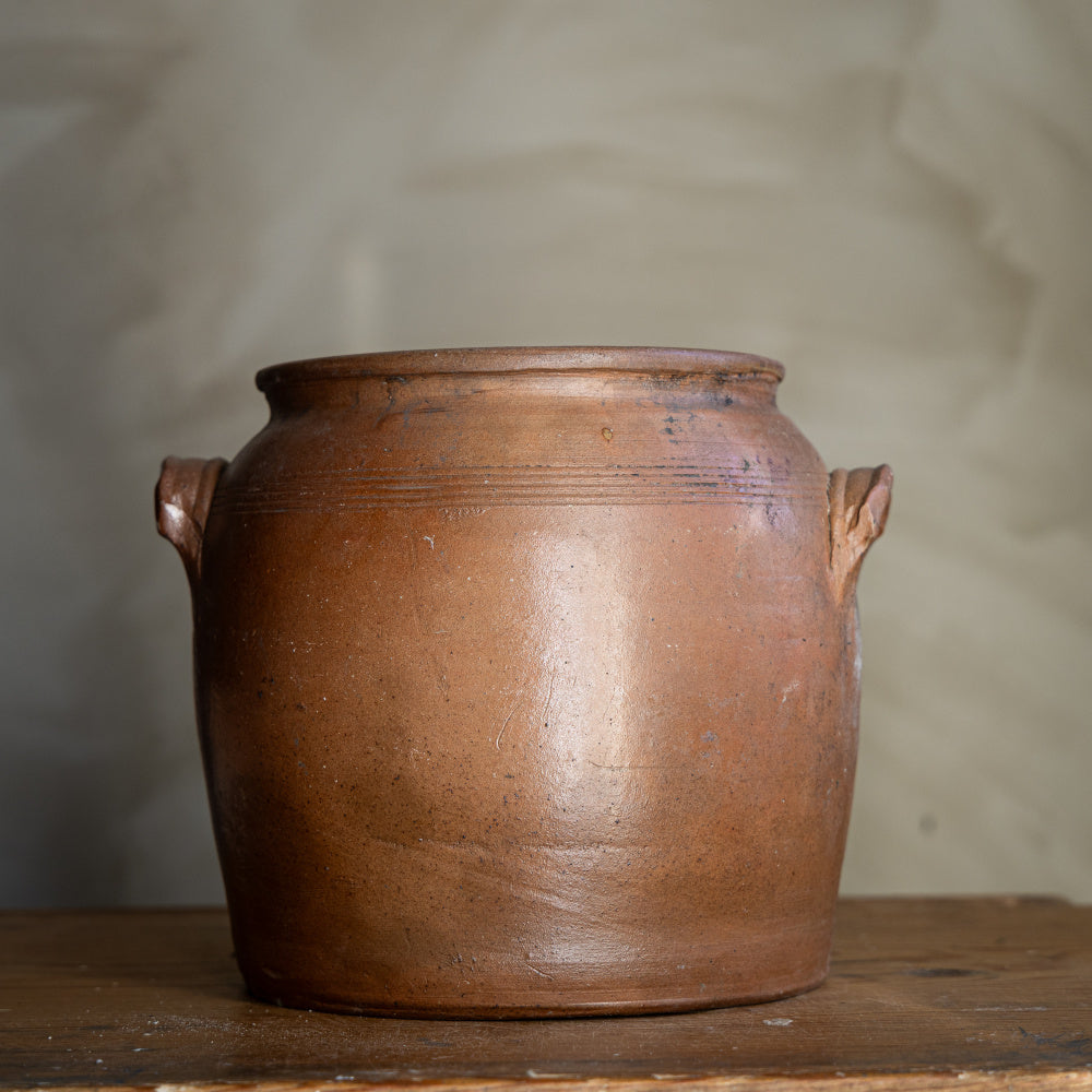 Disse nydelige krukkene ble opprinnelig brukt på 1800- og 1900-tallet for å konservere mat. Hver potte forteller sin egen historie gjennom sin patinerte overflate, som gir den en sjelden og autentisk sjarm du ikke finner i masseproduserte varer.