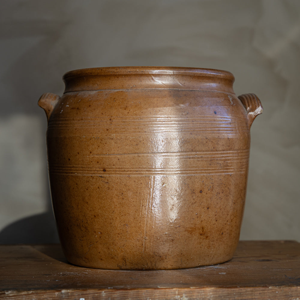 Disse nydelige krukkene ble opprinnelig brukt på 1800- og 1900-tallet for å konservere mat. Hver potte forteller sin egen historie gjennom sin patinerte overflate, som gir den en sjelden og autentisk sjarm du ikke finner i masseproduserte varer.