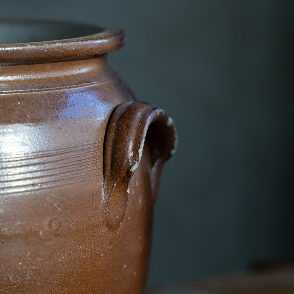 Disse nydelige krukkene ble opprinnelig brukt på 1800- og 1900-tallet for å konservere mat. Hver potte forteller sin egen historie gjennom sin patinerte overflate, som gir den en sjelden og autentisk sjarm du ikke finner i masseproduserte varer.