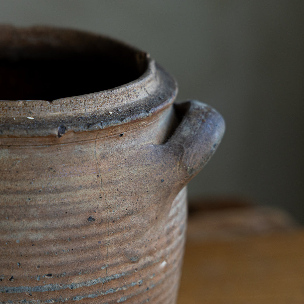 Disse nydelige krukkene ble opprinnelig brukt på 1800- og 1900-tallet for å konservere mat. Hver potte forteller sin egen historie gjennom sin patinerte overflate, som gir den en sjelden og autentisk sjarm du ikke finner i masseproduserte varer.