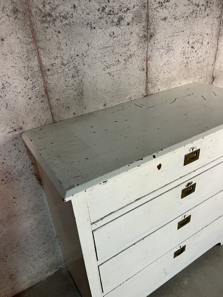 Kommoden har fire gode skuffer, og origimale messingbeslag.