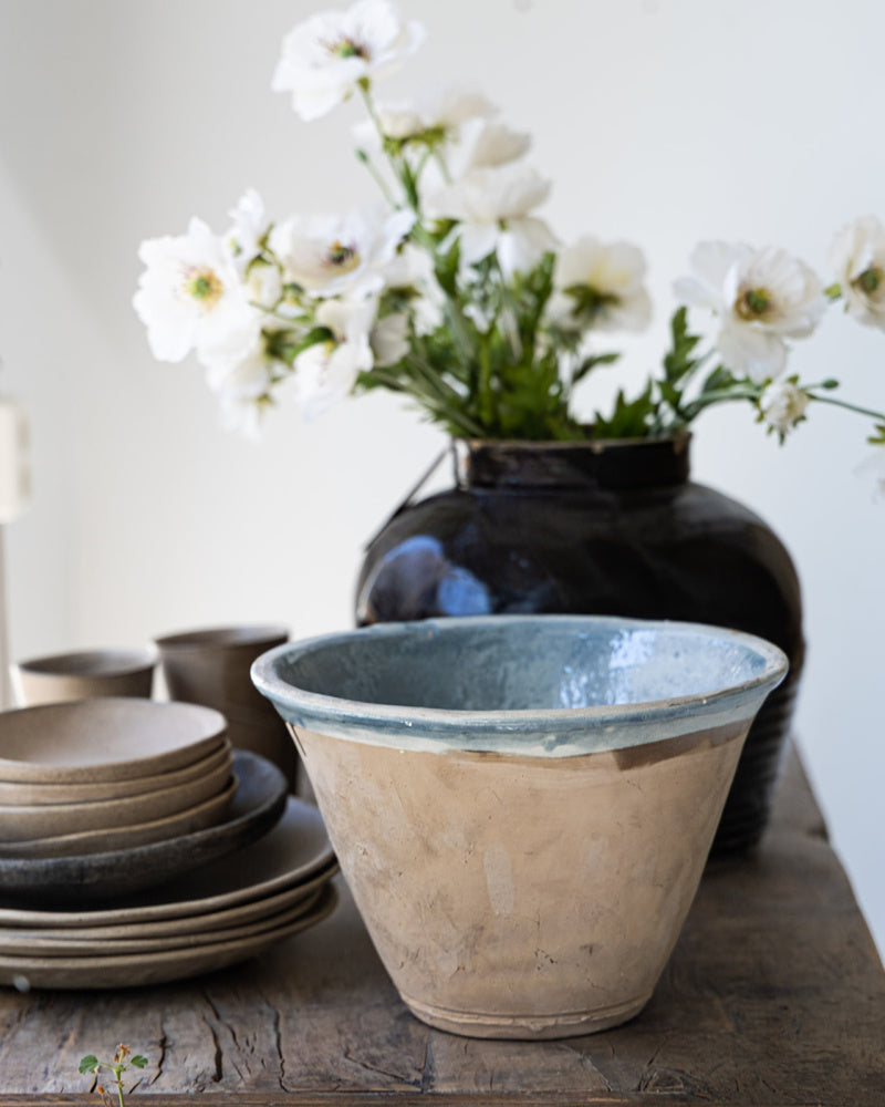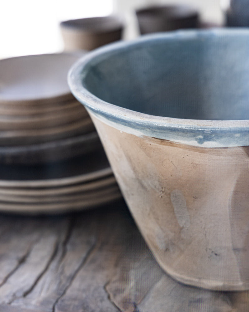 Stor skål i nydelig blåfarge. Denne skåla er "rustikk" i utseendet og glasuren er noe ujevn. Denne varianten har en mer "vintage-look" enn de andre fargene.