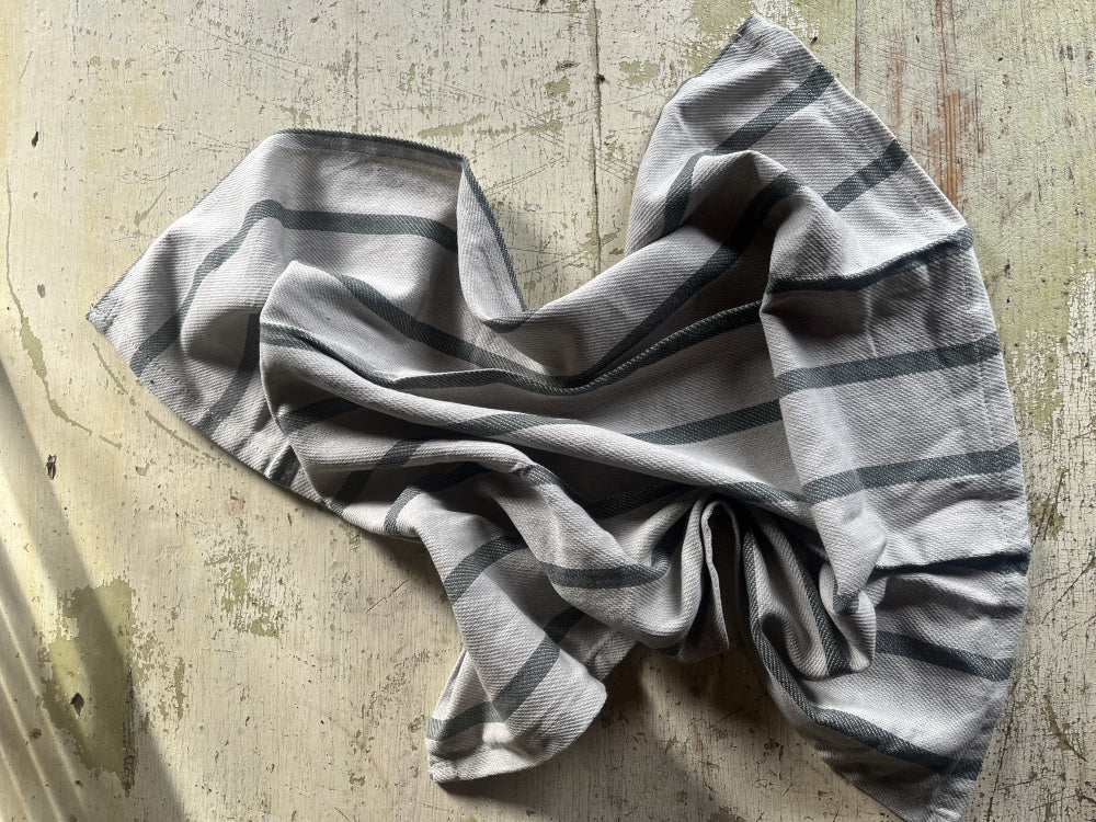 Beige og olivengrønt kjøkkenhåndkle, 50 cm x 70 cm.