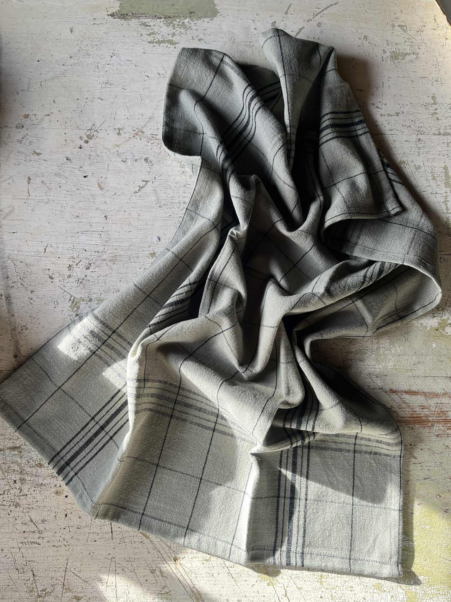 Koselig kjøkkenhåndkle i oliven og sort.