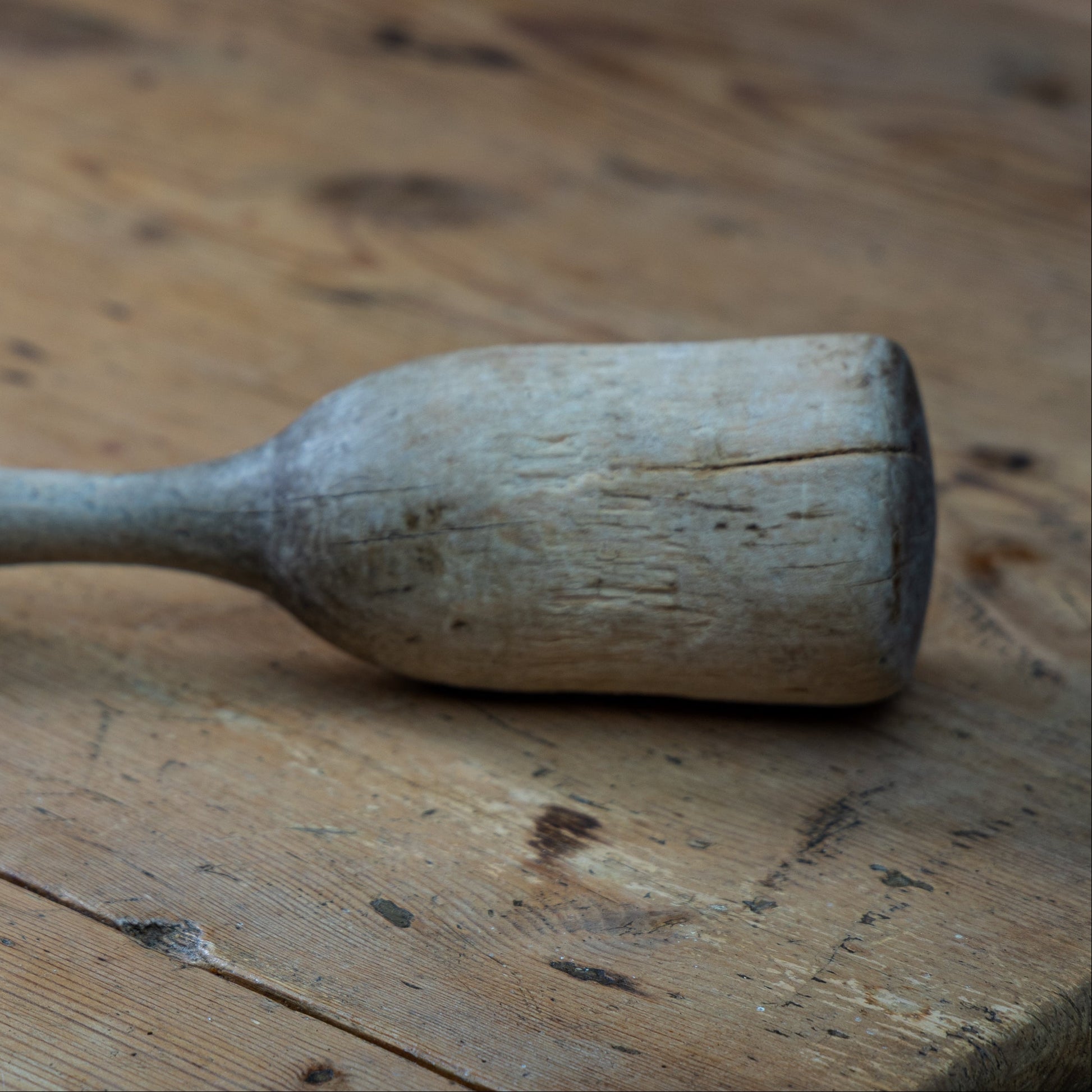 Eldre kjøkkenredskap av tre. Redskapet er 27 cm.