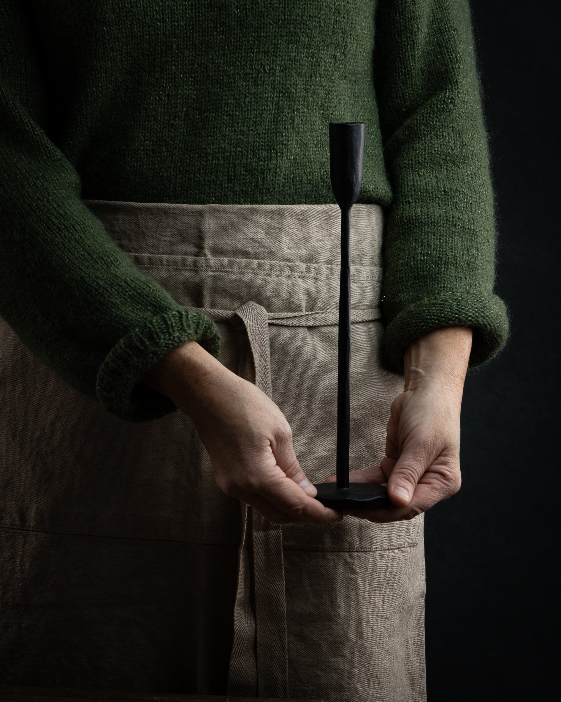Flott lysestake i smijern, passer til vanlige kronelys. Står godt alene, men er også fin og kombinere med andre lysestaker i ulike høyder.