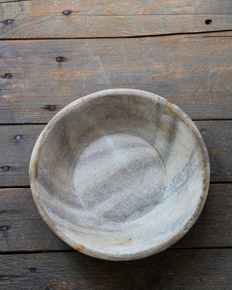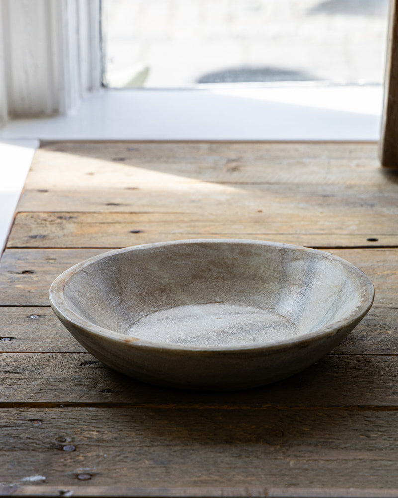 Nydelig fat av marmor, håndplukket og med masse historie. Fatene har vært brukt som servise til mat. Hvert fat er unikt, og ulikheter forekommer. Fatet er elegant og perfekt for moderne eller rustikk innredning. Passer perfekt som fat til kubbelys, brett til smykkene på badet, eller med frukt i på kjøkkenbenken.