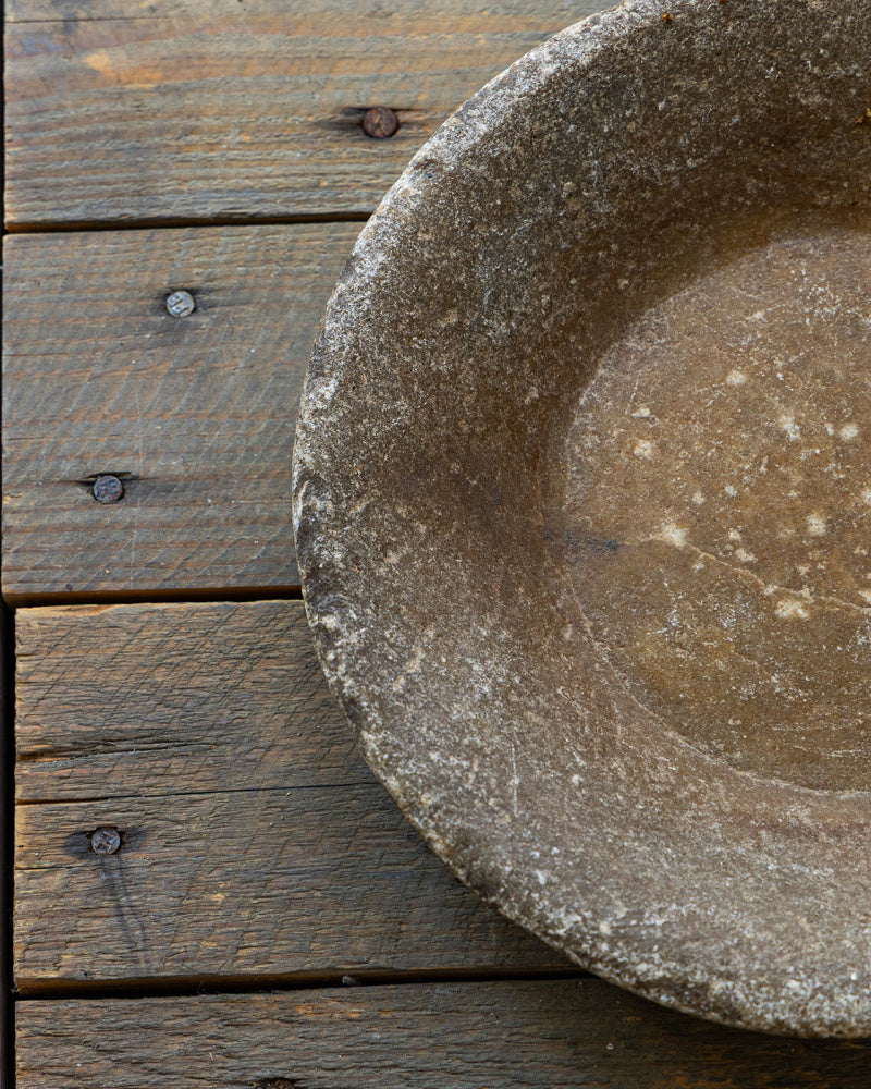 Nydelig vintage fat av marmor, håndplukket og med masse historie. Fatene har vært brukt som servise til mat. Hvert fat er unikt, og ulikheter forekommer. Fatet er elegant og perfekt for moderne eller rustikk innredning. Passer perfekt som fat til kubbelys, brett til smykkene på badet, eller med frukt i på kjøkkenbenken.