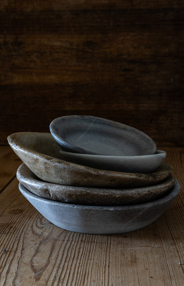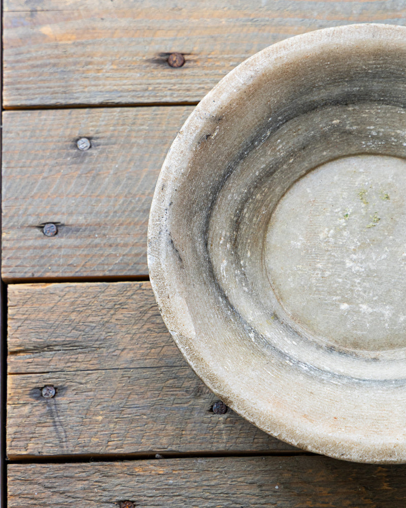 Nydelig vintage fat av marmor, håndplukket og med masse historie. Fatene har vært brukt som servise til mat. Hvert fat er unikt, og ulikheter forekommer. Fatet er elegant og perfekt for moderne eller rustikk innredning. Passer perfekt som fat til kubbelys, brett til smykkene på badet, eller med frukt i på kjøkkenbenken.