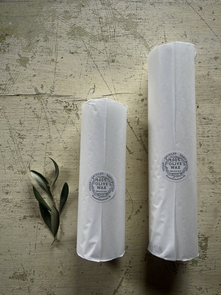 Å bruke resirkulert olivenvoks gir disse lysene en vakker tekstur.