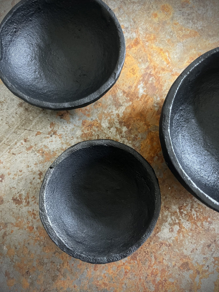 3 flotte skåler, nydelige sammen, men kan også brukes hver for seg. Flotte til å servere småsnacks i på tapasbordet, eller som dekor i seg selv.