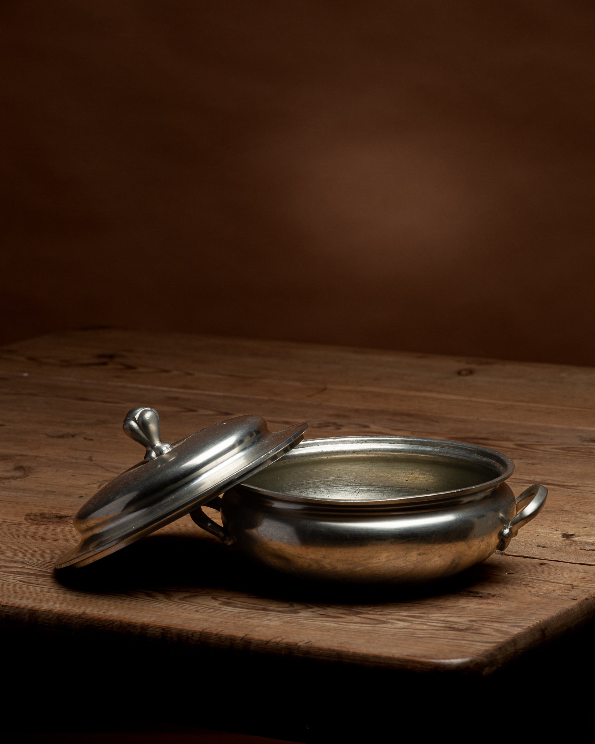 Norsk tinnskål med lokk