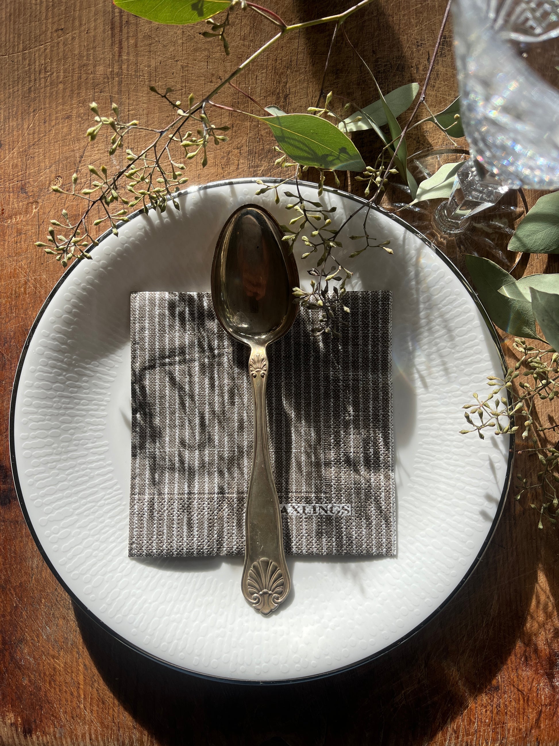 Papirservietter med hvite og beige striper fra Axlings.