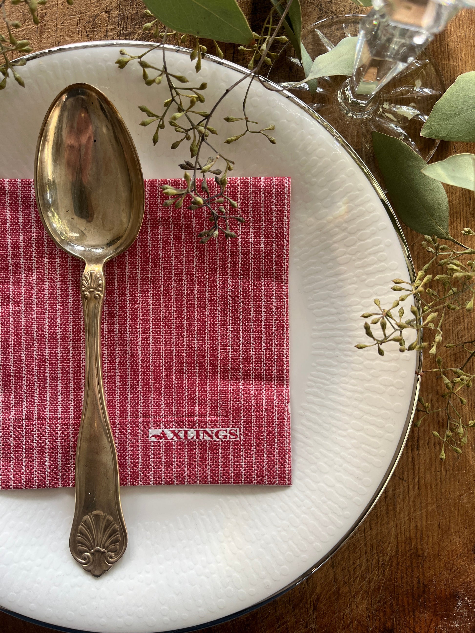 Papirserviett 24x24 cm - Stripete rød/offwhite