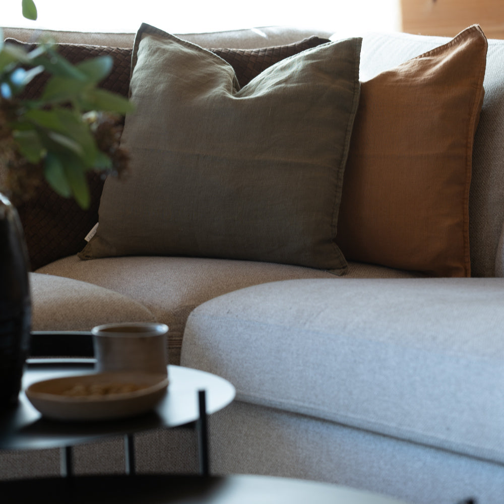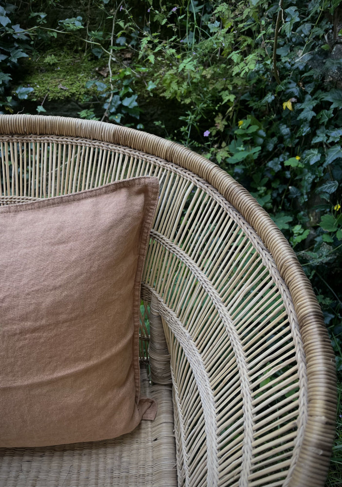 Nydelig linpute i en varm brun farge, passer godt sammen med sort, hvitt og beige.