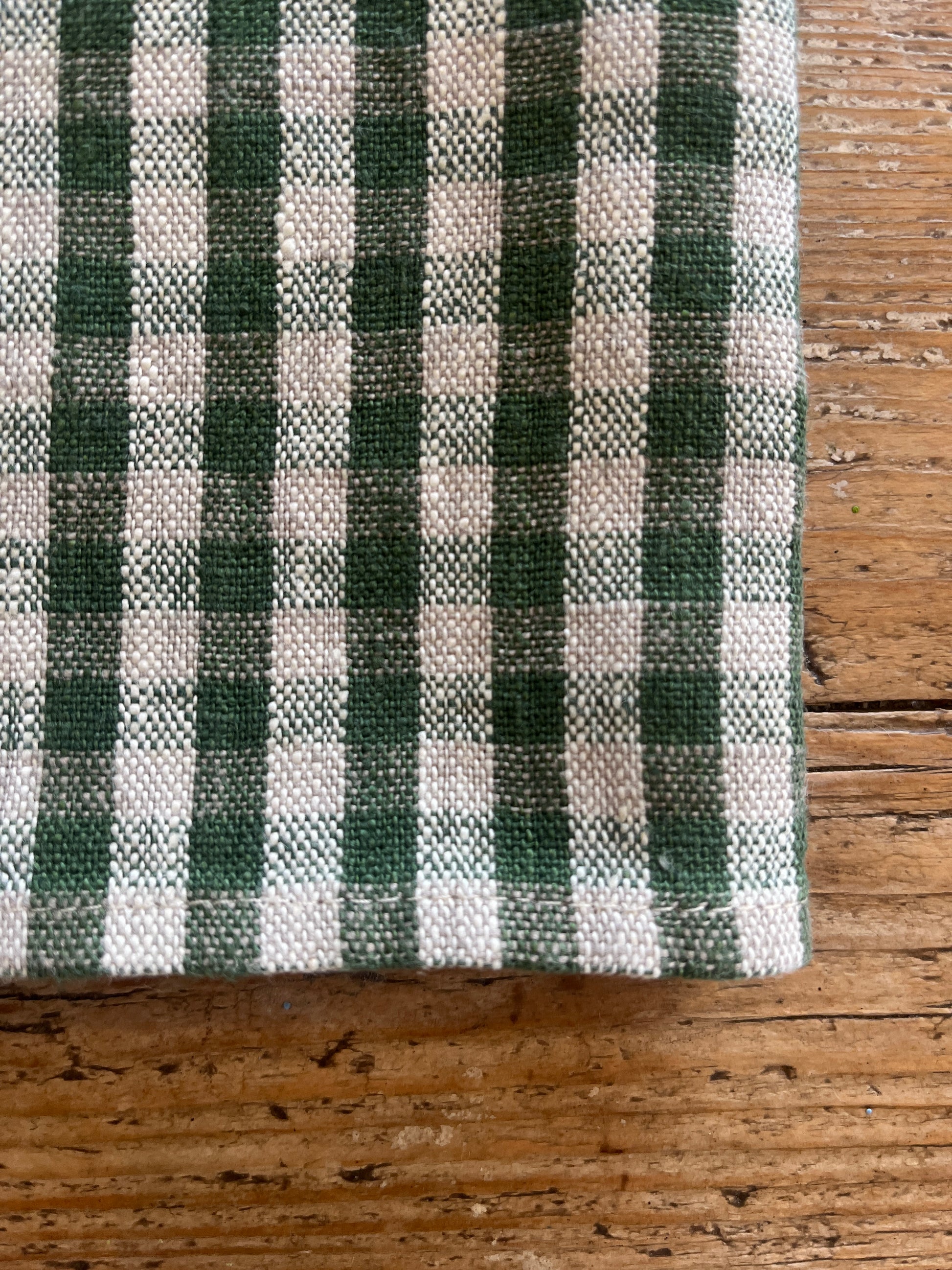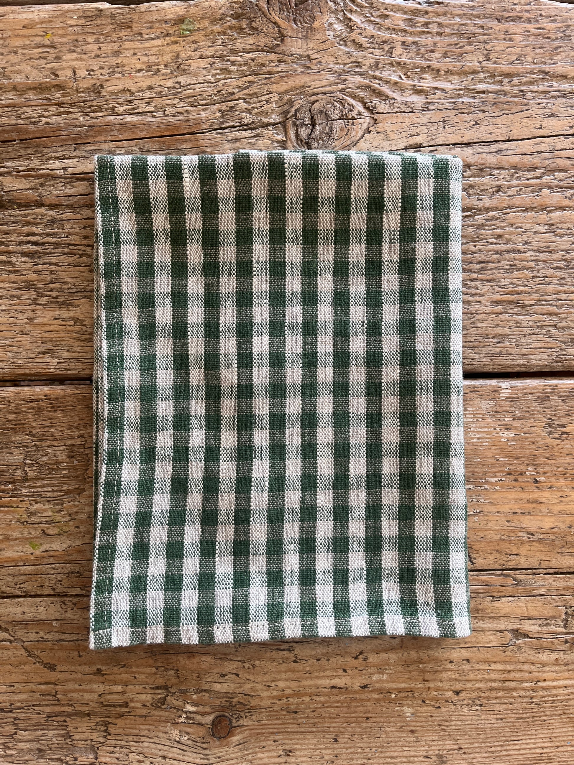 Håndkleet er klassisk rutete i grønn og natur, det har en hampe så du enkelt kan henge det opp.