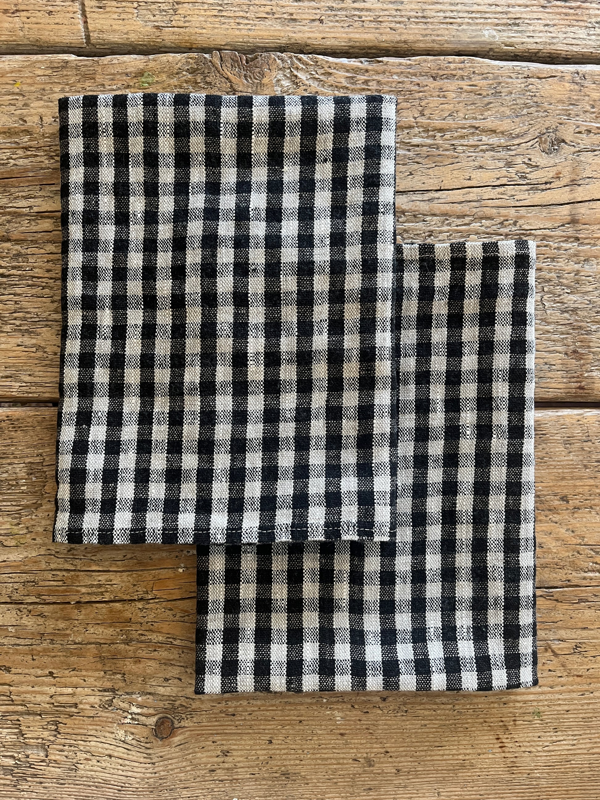 Rutete kjøkkenhåndkle i natur/sort 100% lin, 2stk