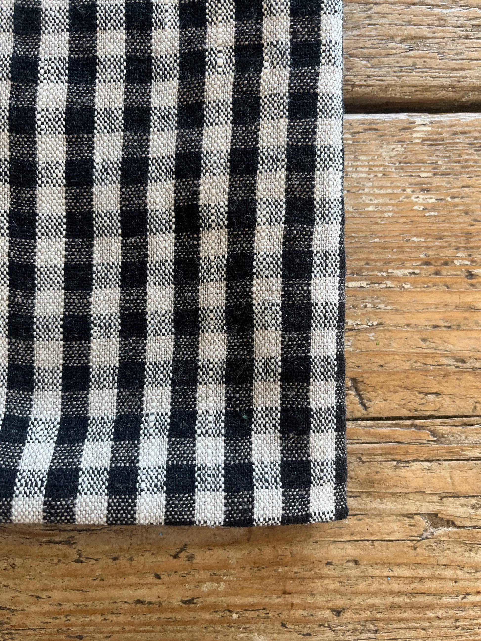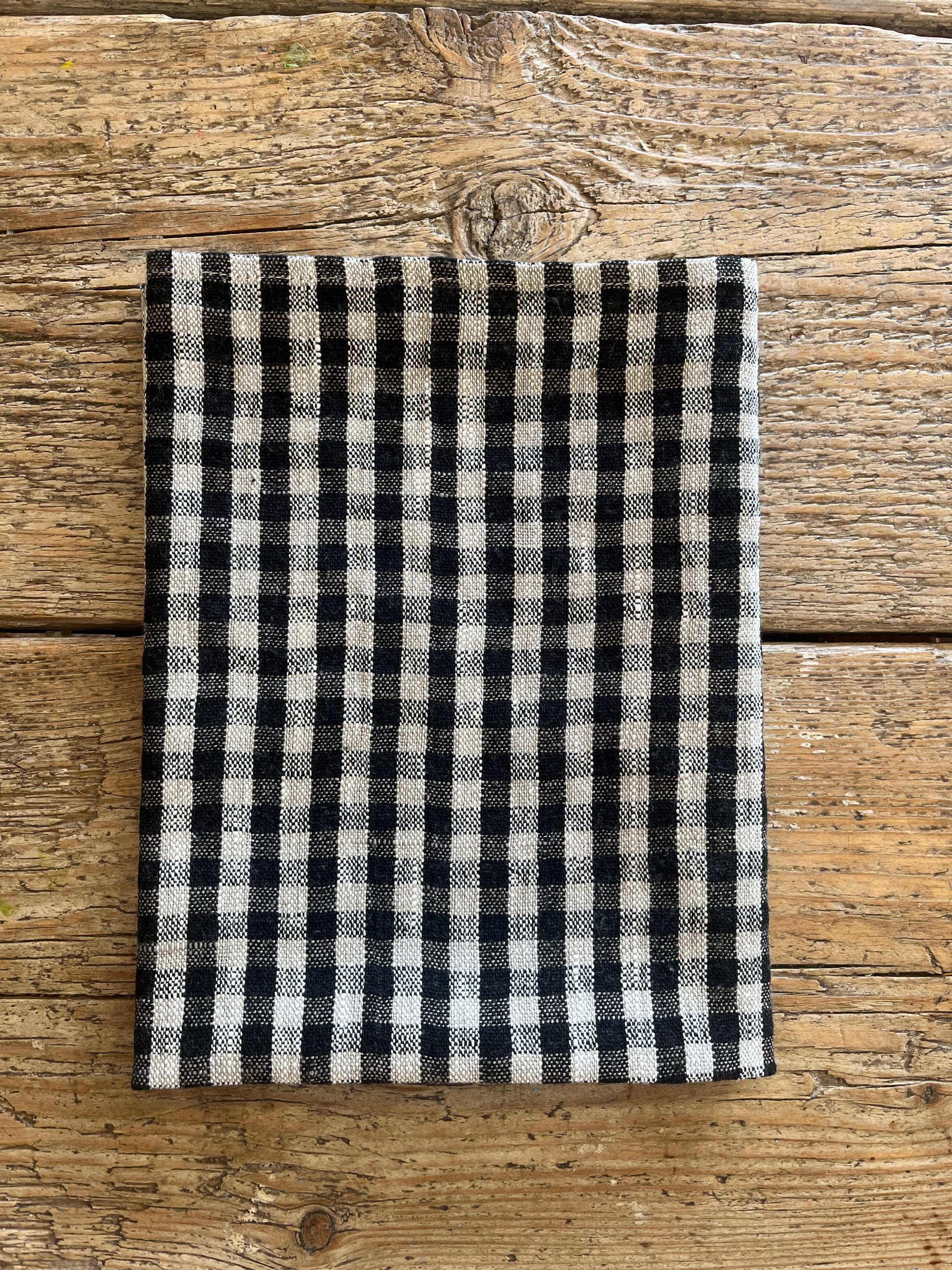 Håndkleet er klassisk rutete i sort og natur, det har en hampe så du enkelt kan henge det opp.