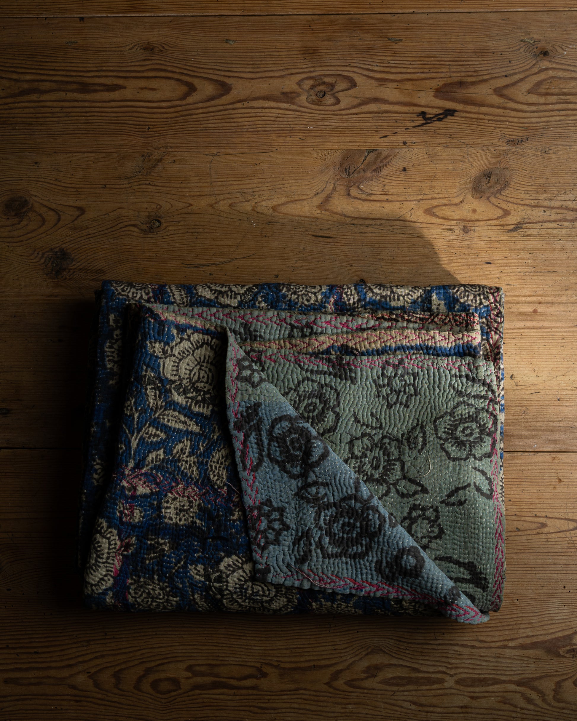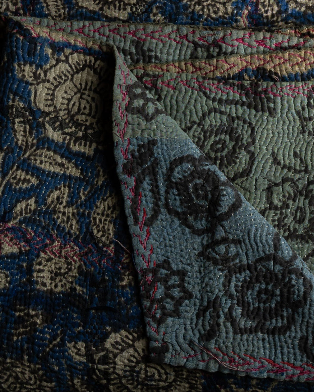 Teppet er sydd av indiske sarier, den tradisjonsrike indiske klesdrakten. Hvert teppe er unikt, og alle har sjarmerende små detaljer. Teppet kan brukes som sengeteppe, eller i sofakroken.