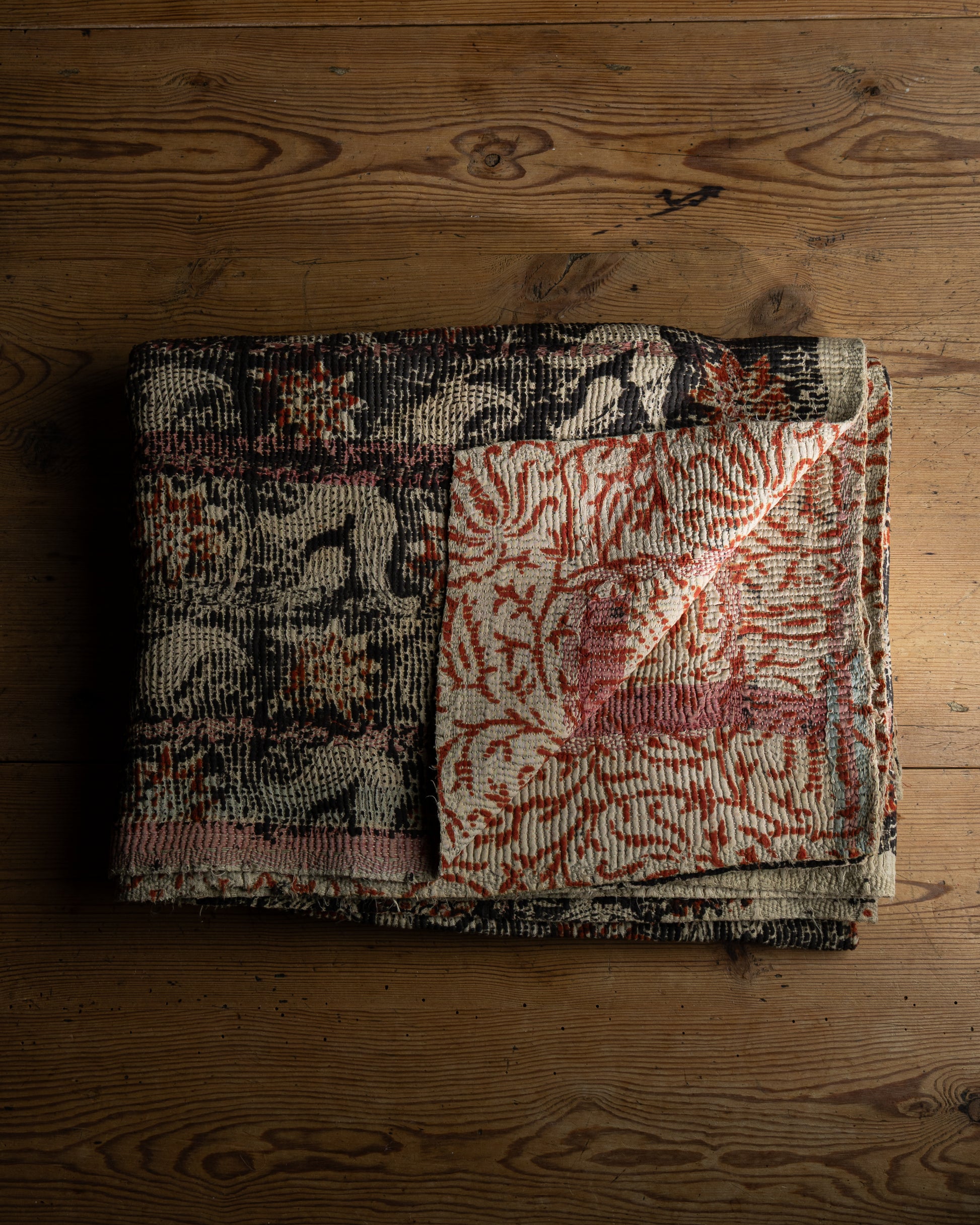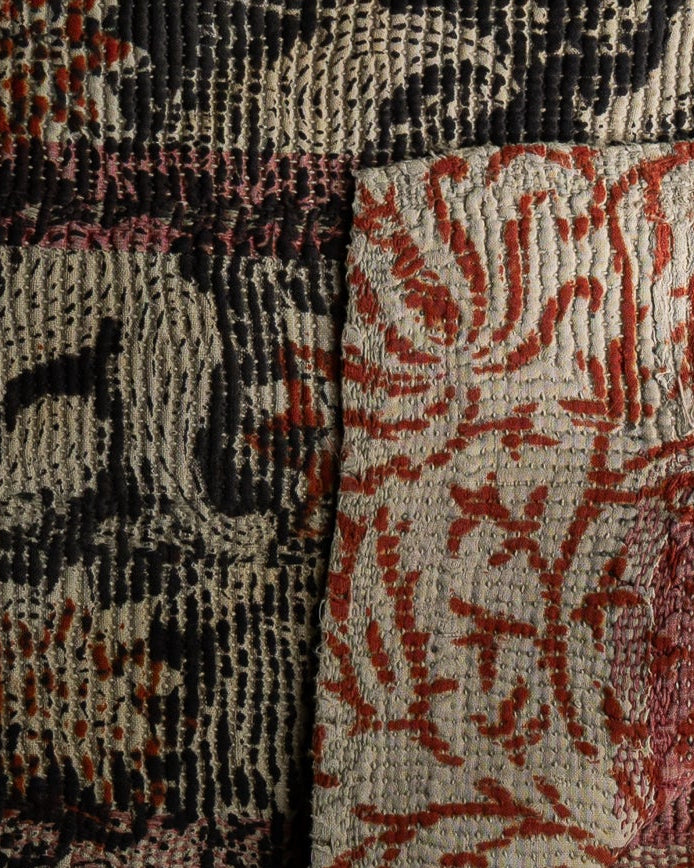Teppet er sydd av indiske sarier, den tradisjonsrike indiske klesdrakten. Hvert teppe er unikt, og alle har sjarmerende små detaljer. Teppet kan brukes som sengeteppe, eller i sofakroken.