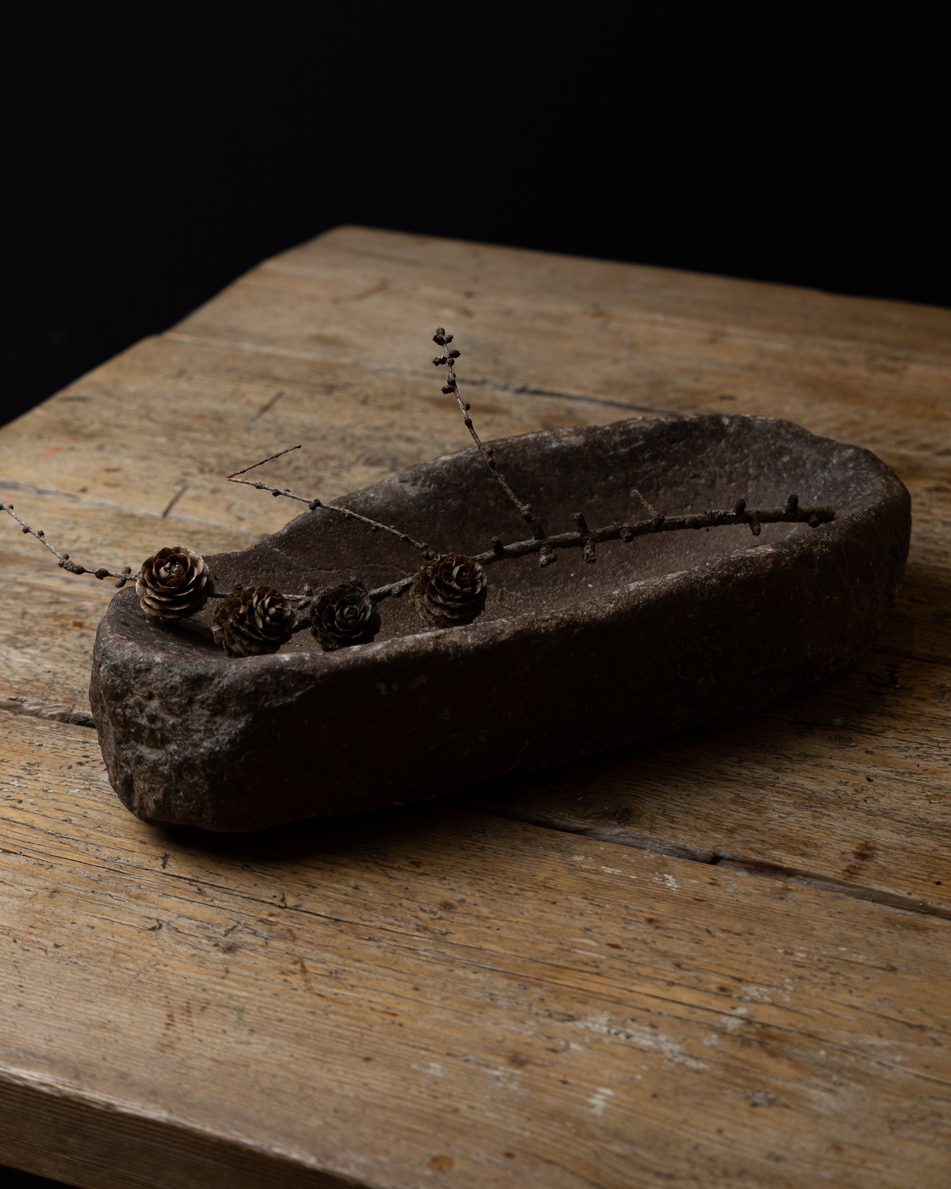 Nydelig gammelt stenfat. Perfekt til frukt, eller et dekorelement i seg selv.