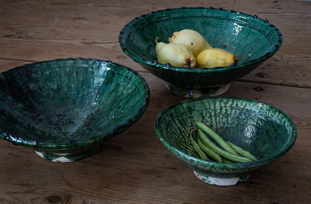 Tamegrout er en liten by helt sør i Marokko. Denne nydelige keramikken blir laget for hånd der, og teknikken de bruker går flere generasjoner bakover i tid. Fargen kommer fra mineraler i denne regionen. Siden skålene er laget for hånd vil farge, form og uttrykk variere.