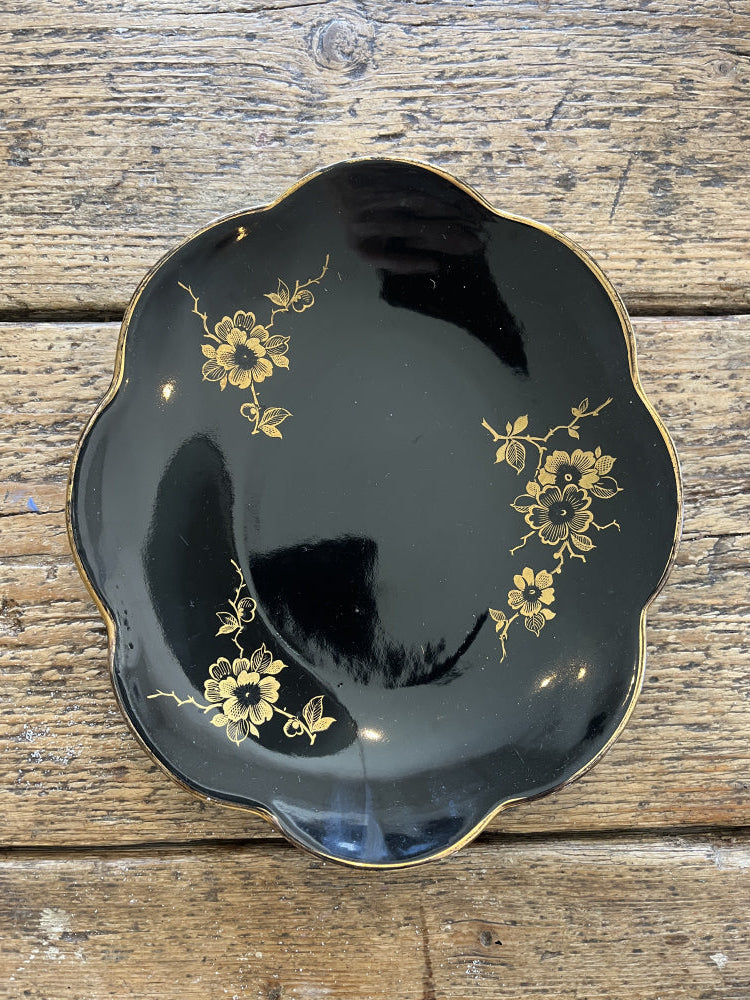 Eldre fat i sort med gulldetaljer fra Egersund flint.