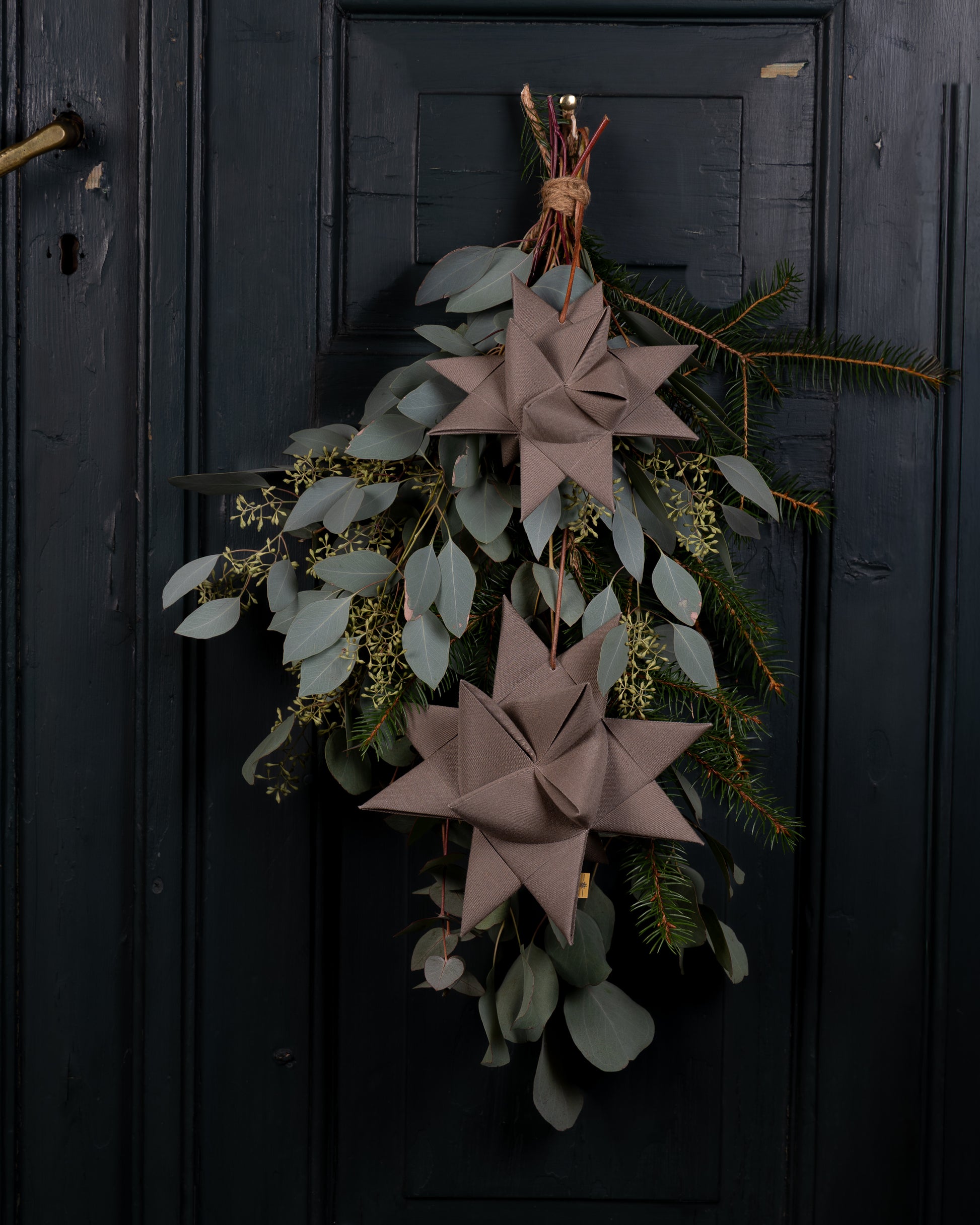 Gjør inngangsdøren din klar til jul med vårt eksklusive, håndlagde seilduksdørsett – det perfekte valget for å skape en koselig og stilig julestemning rett ved inngangen. Denne unike dørdekorasjonen er håndlaget i Danmark og er laget av slitesterkt, værbestandig seilduk, noe som sikrer at dørsettet ditt holder seg vakkert hele vinteren, uansett vær.