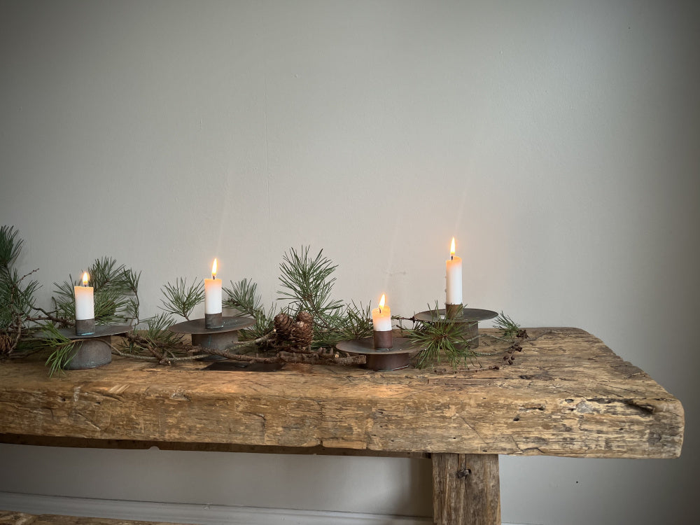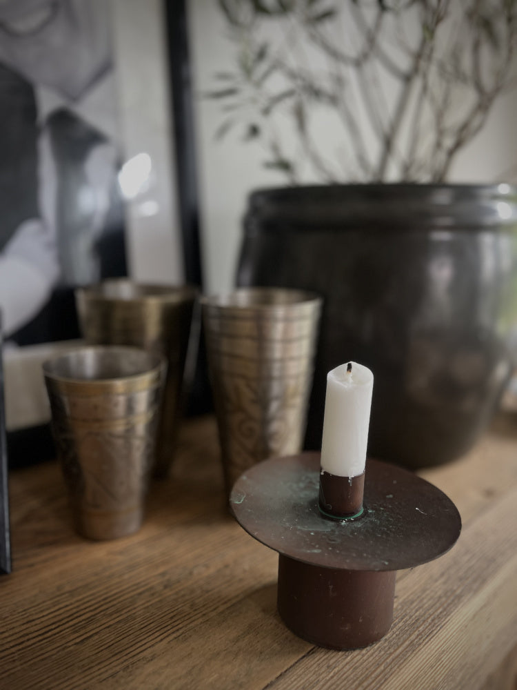 Flott kobberfarget lysestake i rustikk look. Lysestaken vil fortsette å pateneres dersom den utsettes for fukt.