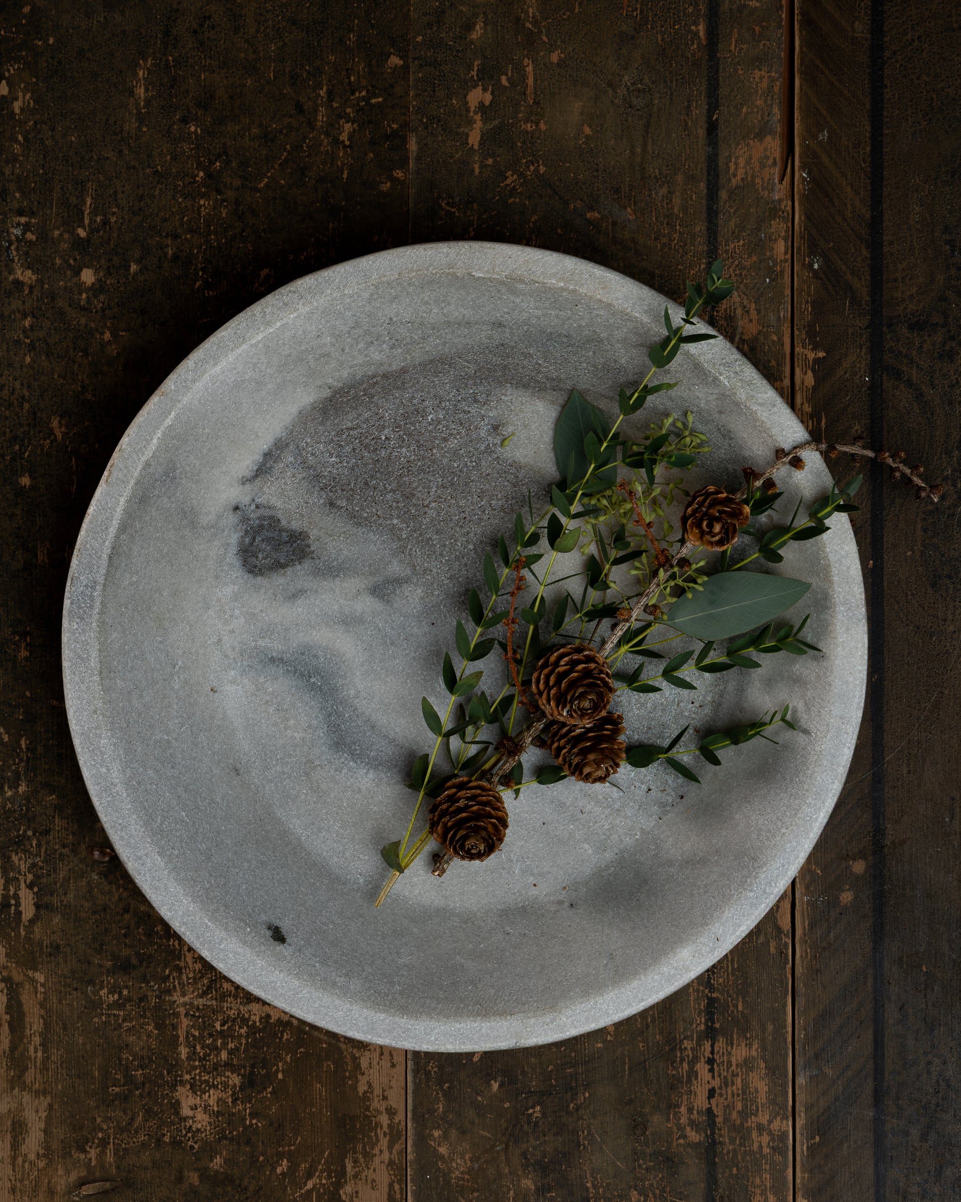 Nydelig stort marmorfat. Dette fatet er elegant og tidløst, og passer i de fleste rom. På kjøkkenet kan det brukes som serveringsfat, til parfymer ol på badet, eller som dekor på stuebordet. Fatat passer godt som lysfat, da marmor tåler varme godt!