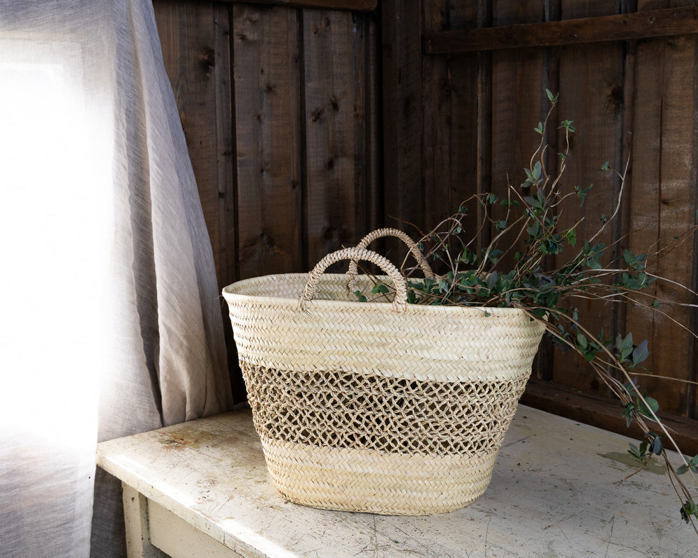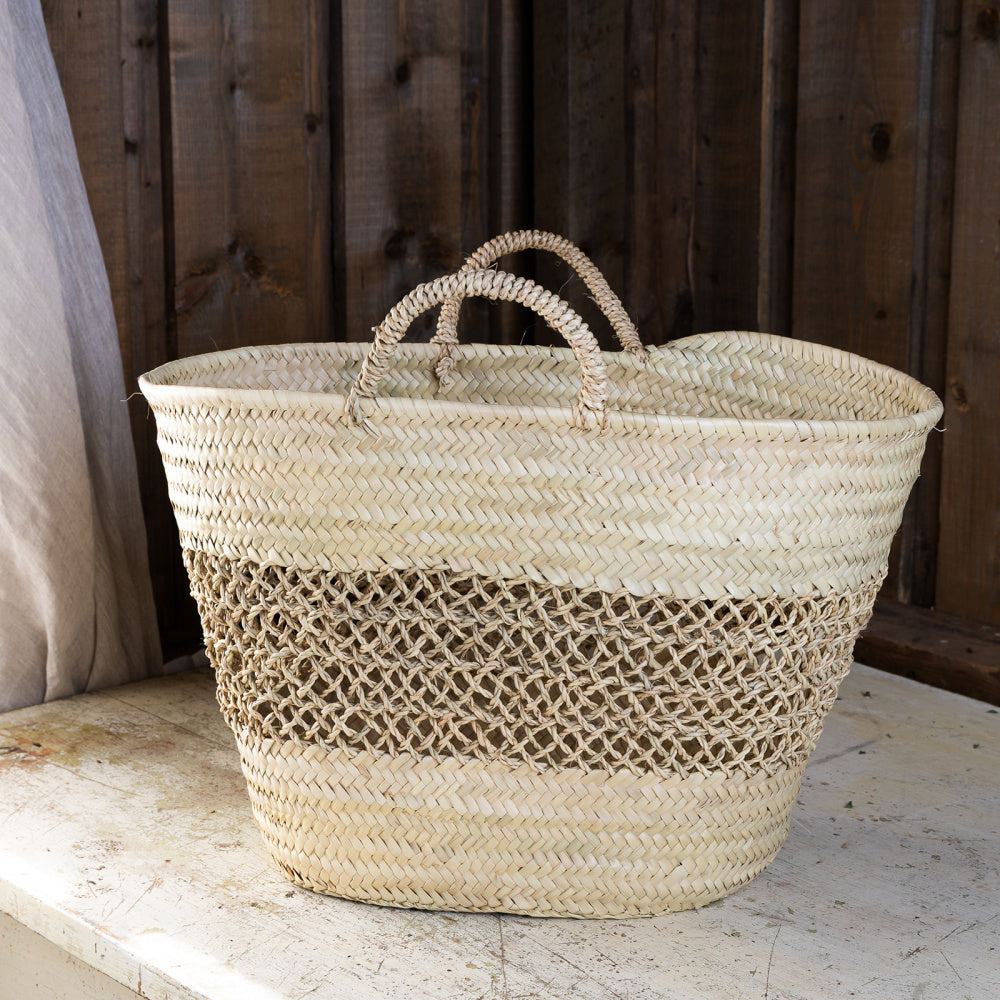 Håndlaget stråveske. Passer perfekt til strandtur, til handleturen, eller som dekor på verandaen.
