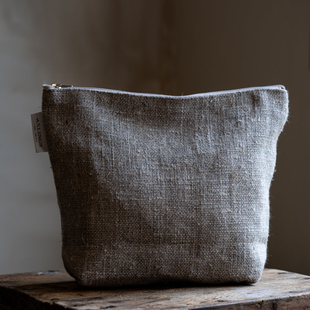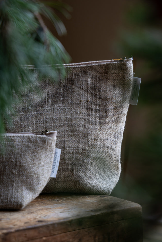 Vaskbar toalettmappe med metallglidelås. Utside i 100 % lin, innside i vokset lin/bomull.