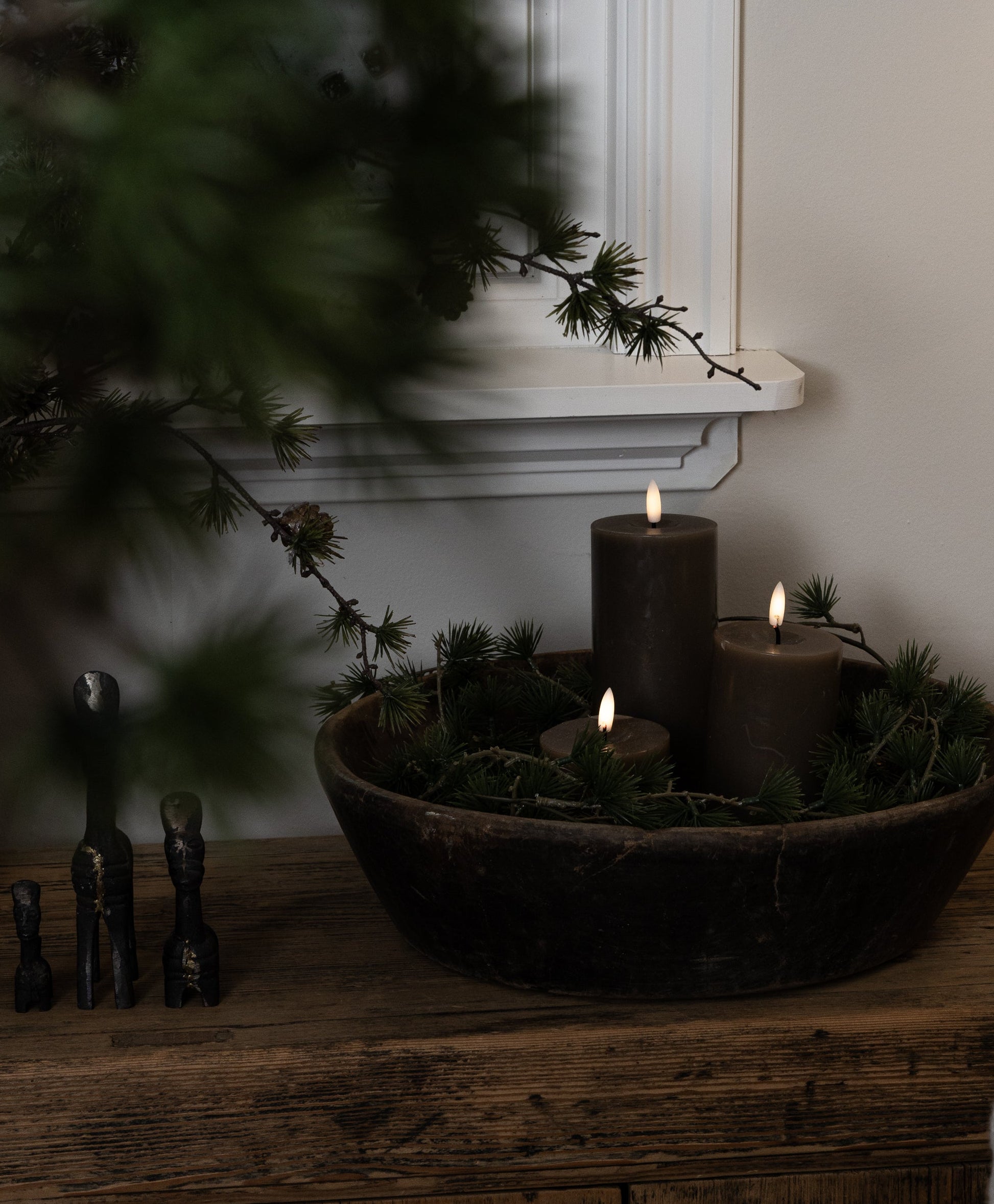 Bollen kan stå på kjøkkenbenken med frukt og grønt oppi, ellers så er den kjempefin å bruke med kubbelys og kvister av noe grønt oppi.