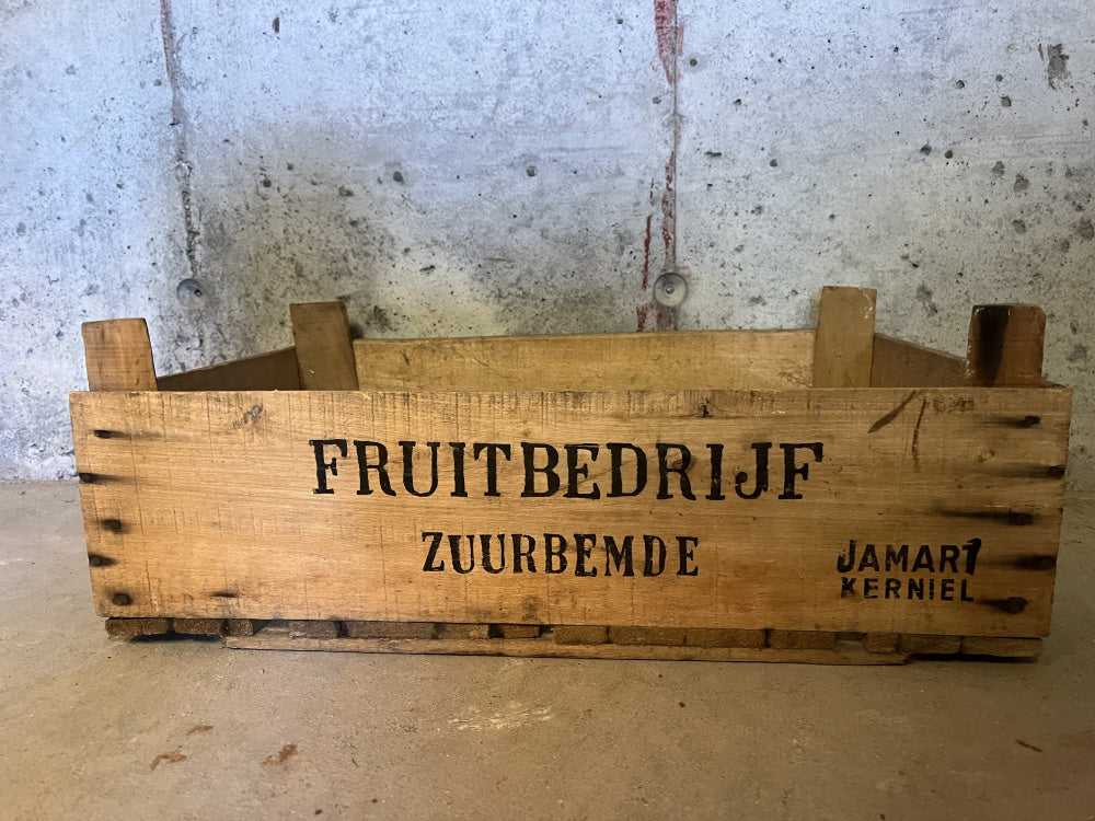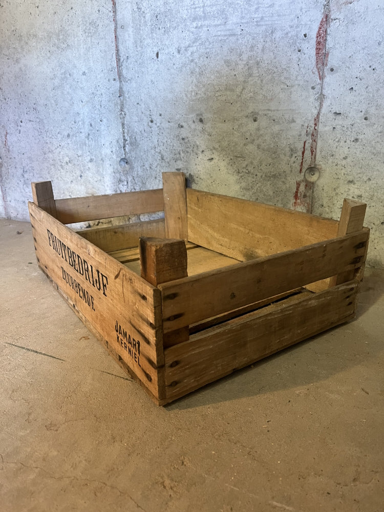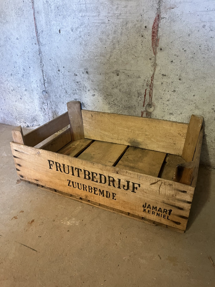 Koselig trekasse med merking "Fruitbedrijf" som kan brukes til oppbevaring av det meste.