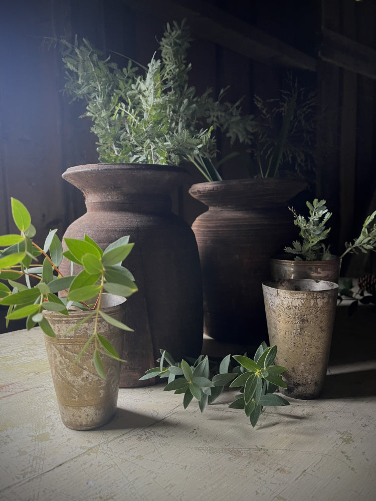 Flotte vintage trevaser. Vasene er flotte som dekor i seg selv, men om man ønsker å bruke den til snittblomster anbefaler jeg å sette en vase inni, da jeg ikke kan garantere for at den er 100% tett. Vasene er unike, og fargeforskjeller og mønster varierer.
