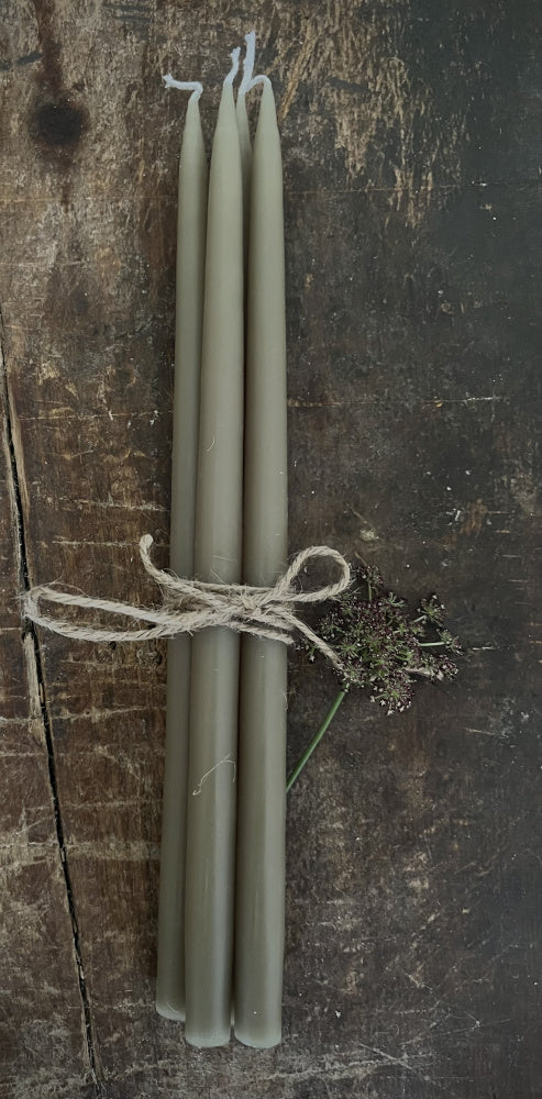 Tynne stearinlys 28 cm, 4 pk - Oliven
