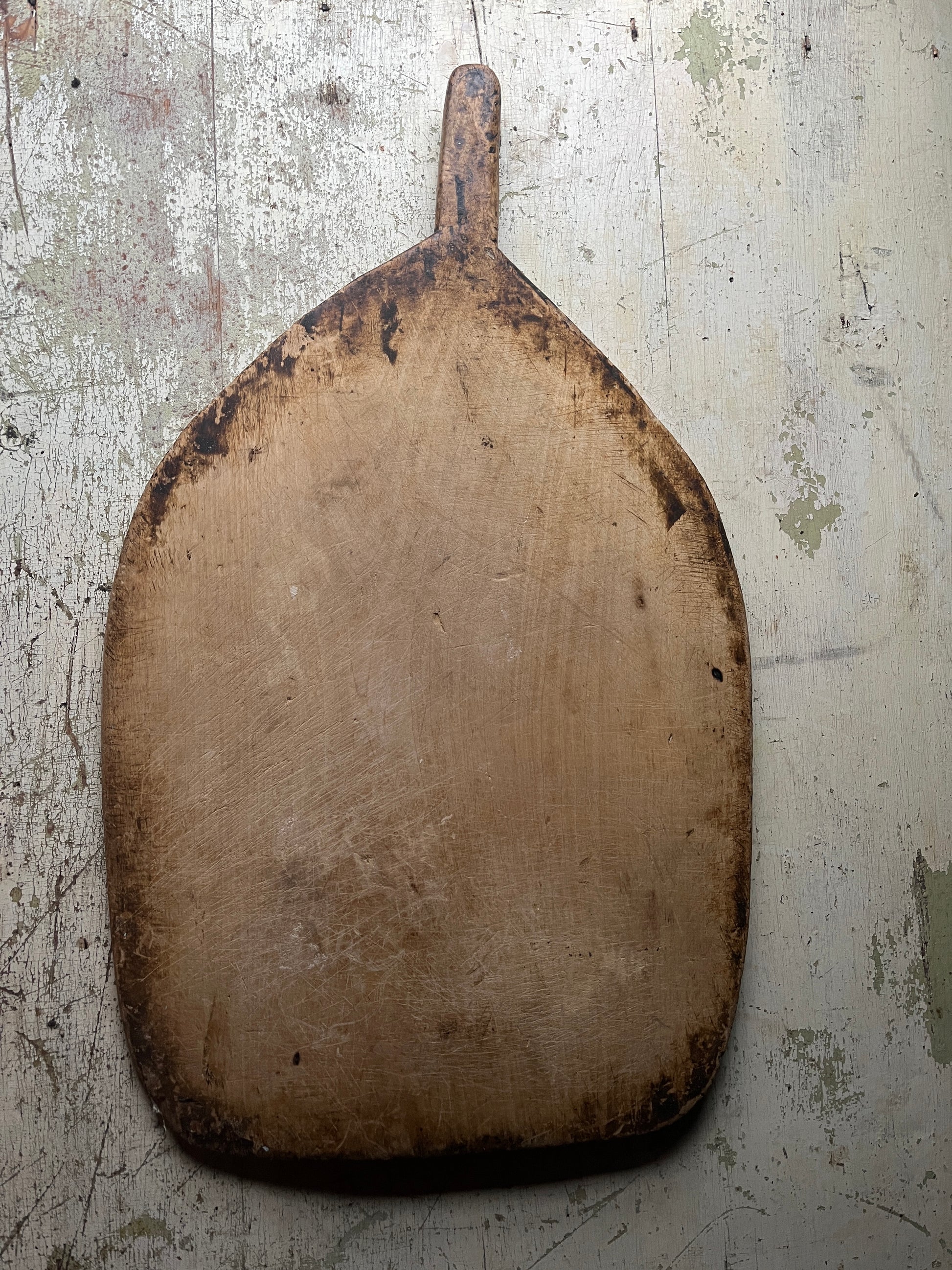 Rustik og sjarmerende vintage trefjøl. Fjøla er gammel og er i sine tidligere dager brukt i forbindelse med brødbaking i Tyrkia. Den er håndlaget og unik, her får du ei fjøl som ingen andre har maken til. Fjøla kan brukes til servering av pizza eller tapas, men er også nydelig som et dekorelement på kjøkken eller i stue.
