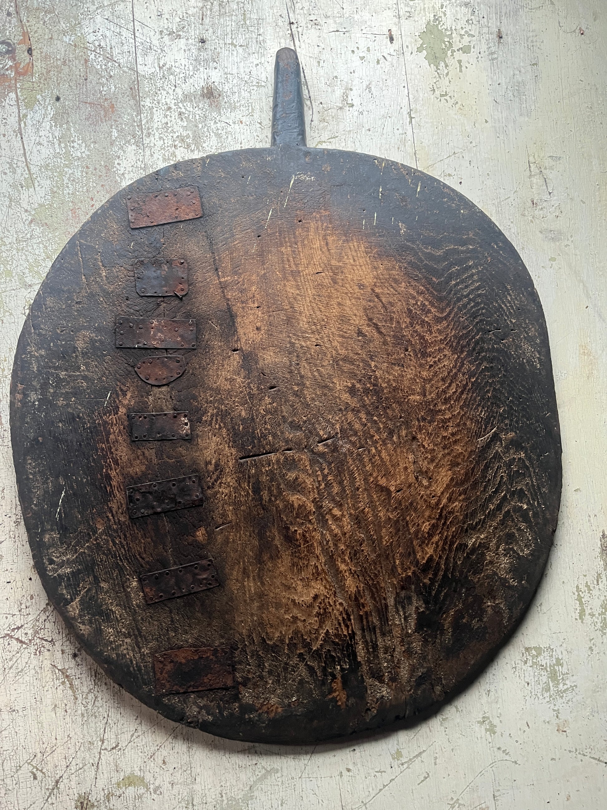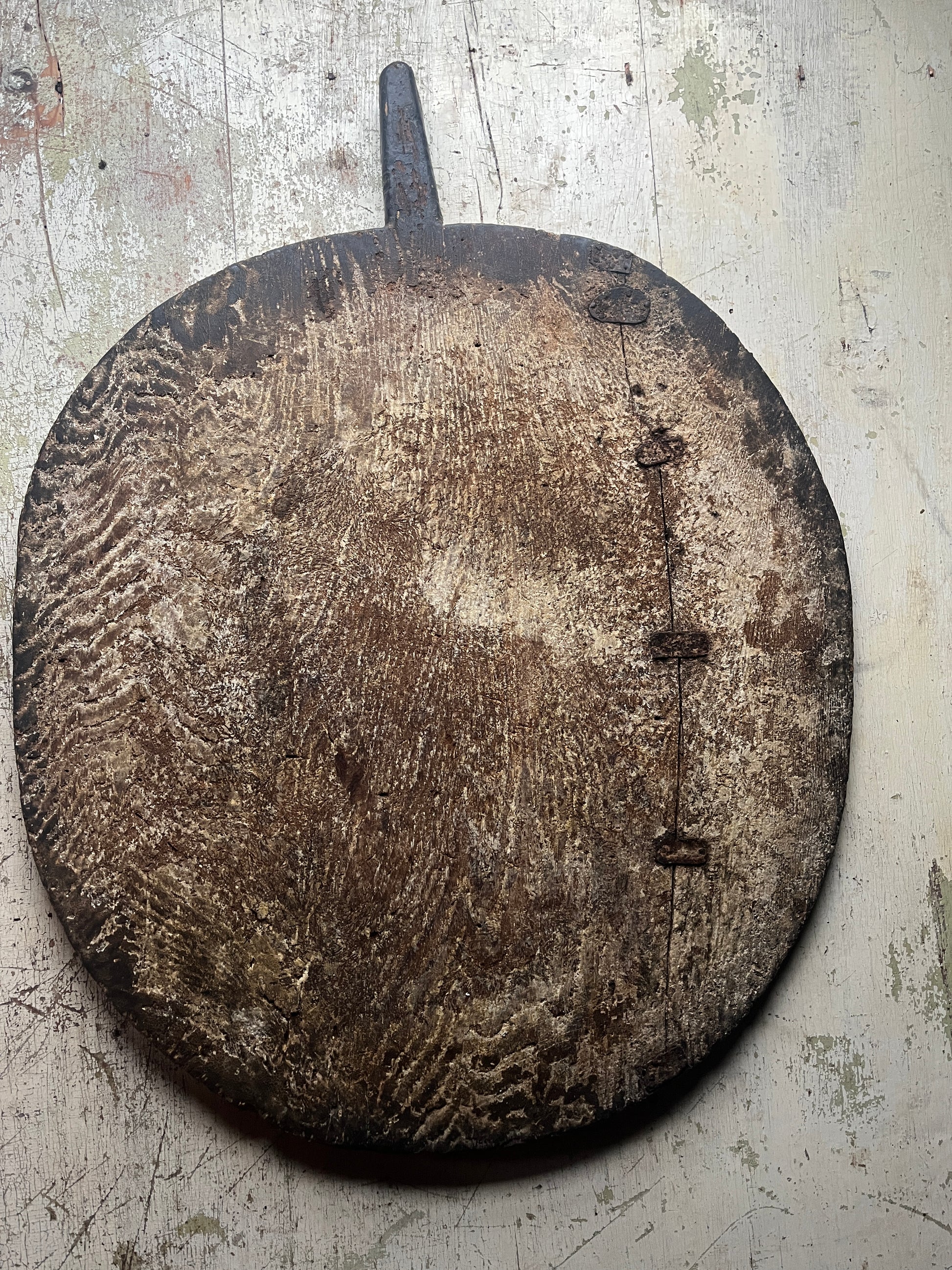 Rustik og sjarmerende vintage trefjøl. Fjøla er gammel og er i sine tidligere dager brukt i forbindelse med brødbaking i Tyrkia. Den er håndlaget og unik, her får du ei fjøl som ingen andre har maken til. Fjøla kan brukes til servering av pizza eller tapas, men er også nydelig som et dekorelement på kjøkken eller i stue.