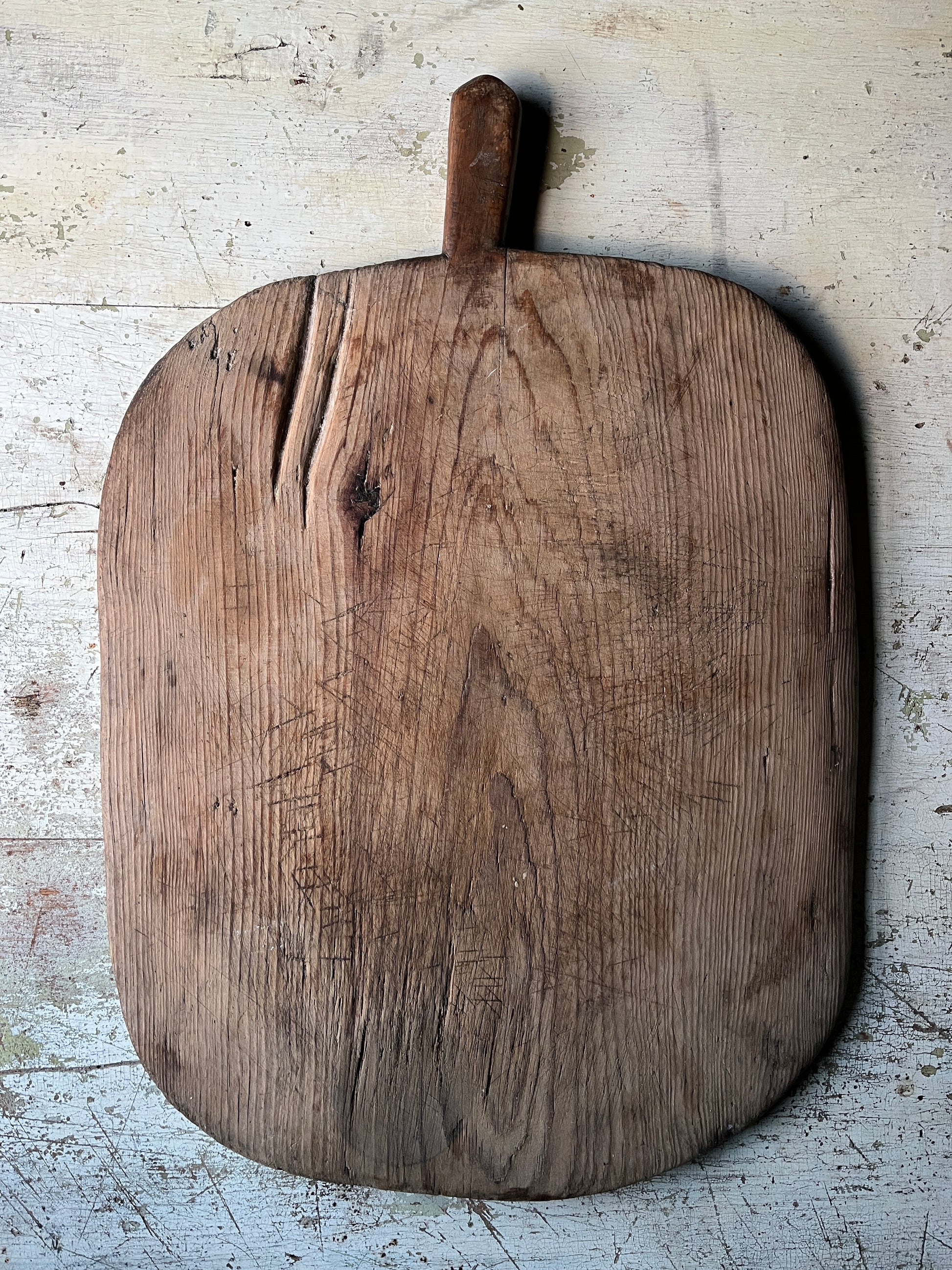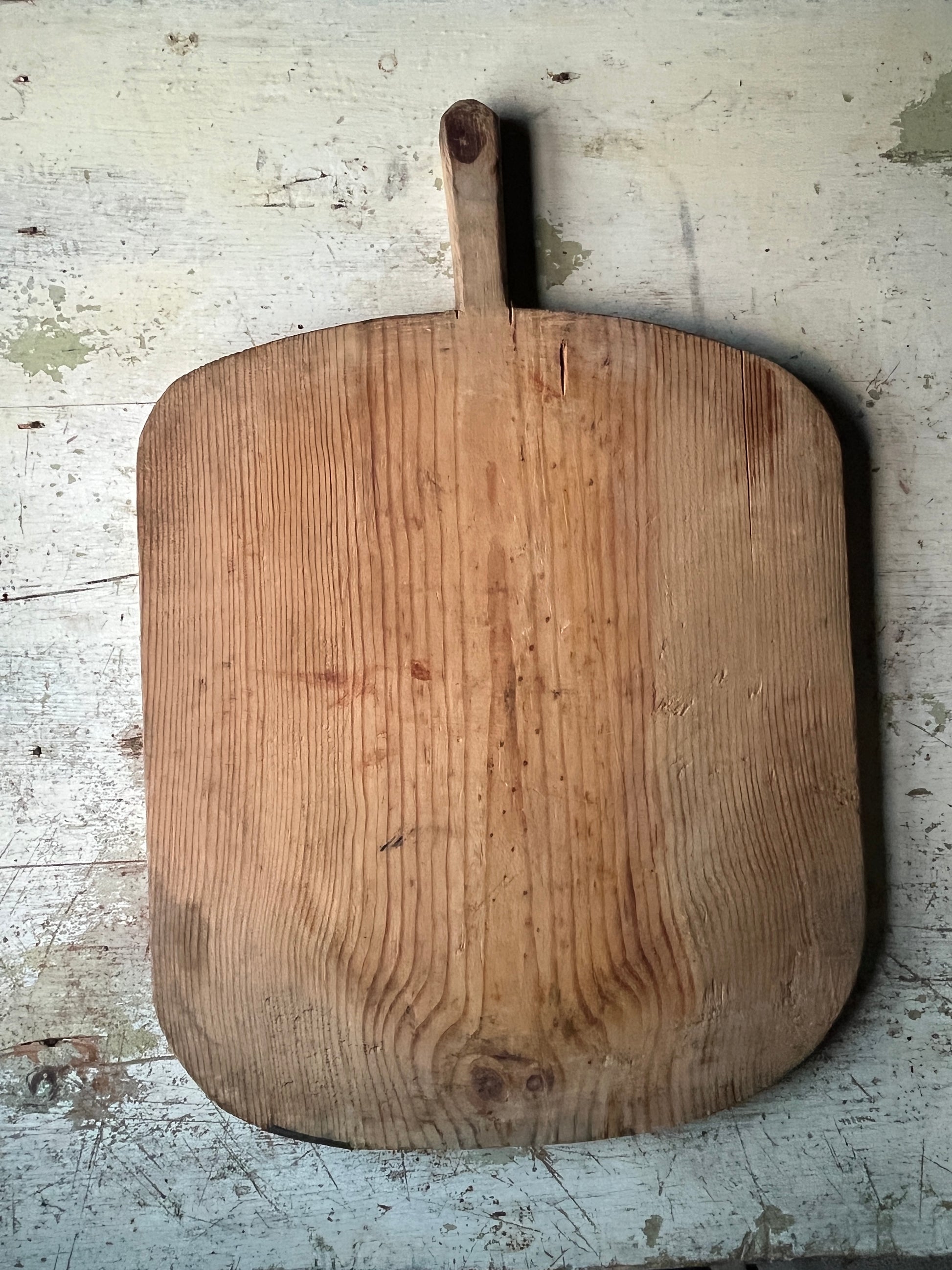 Nydelig og slitt vintage fjøl som gir deg en genuin følelse av sydligere strøk. Skjærefjøla er full av levd liv og er et smykke i seg selv. Kan også brukes som serveringsfat til pizza, oster eller tapas, eller som skjærefjøl.