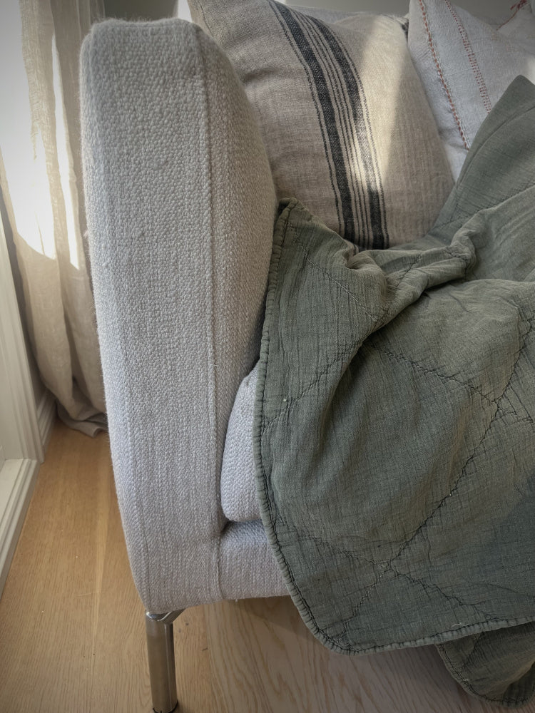 Deilig pledd i vintage-look i en støvete dyp grønn farge. Teppet gjør seg godt som sengeteppe, men kan også brukes som pledd i sofaen.