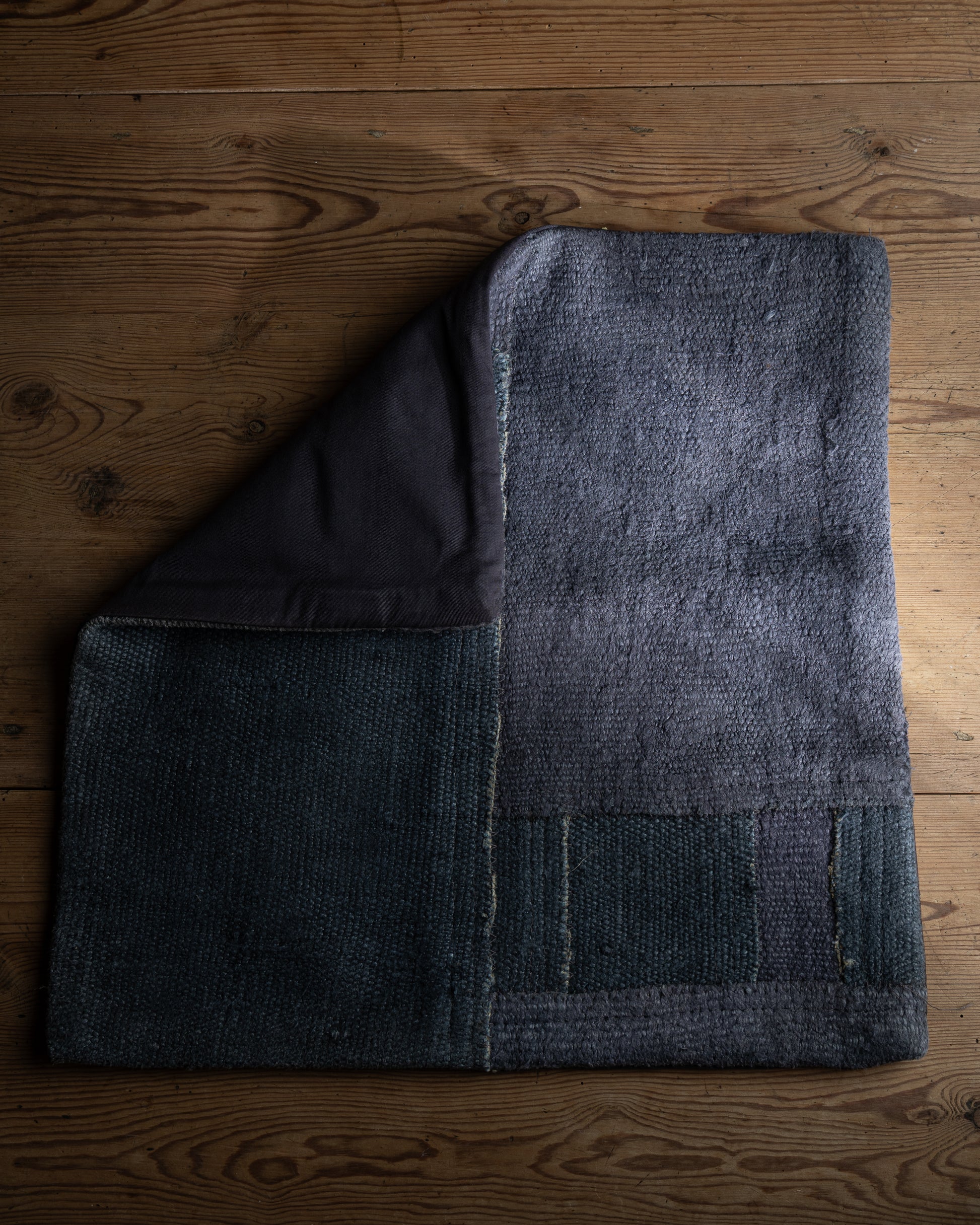 - Farge: Ulike blånyanser, blått bomullstrekk på andre siden.